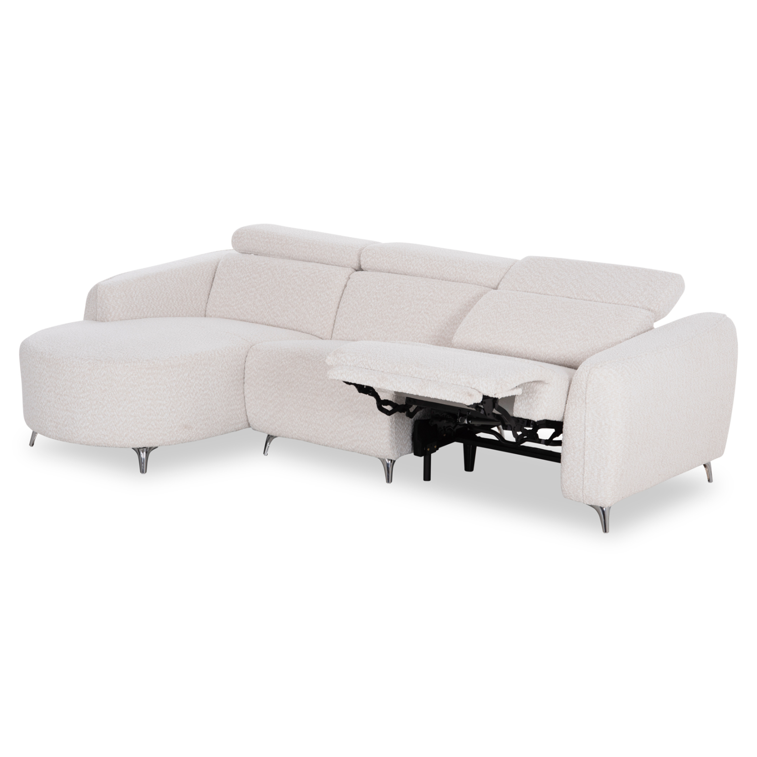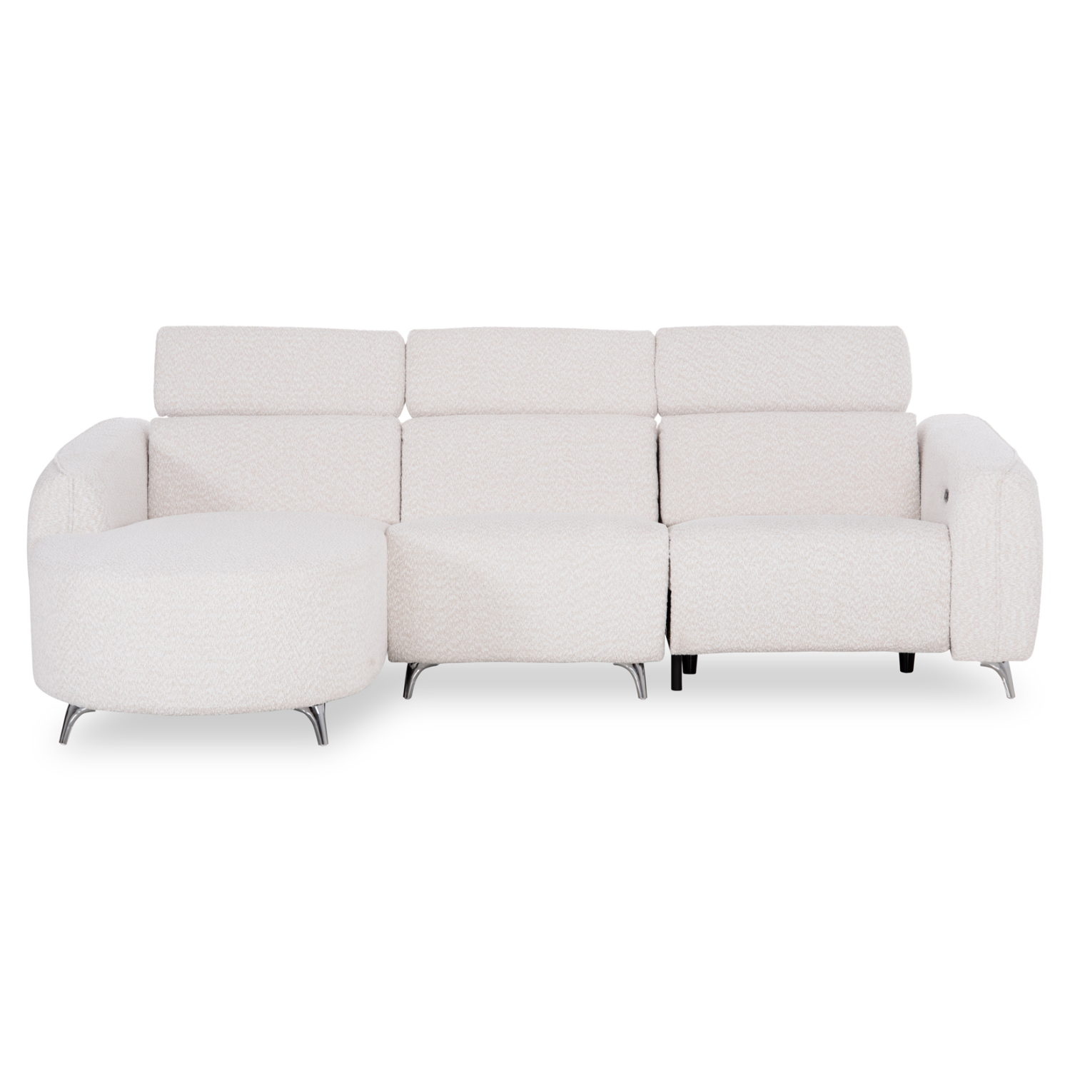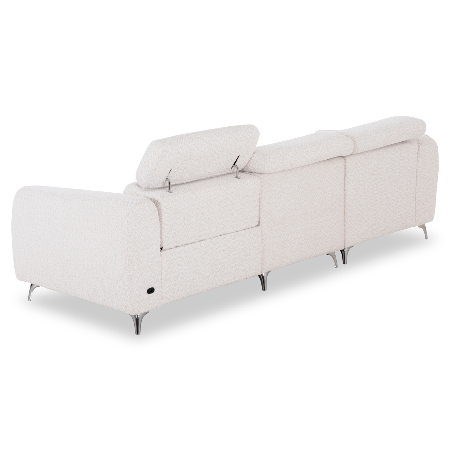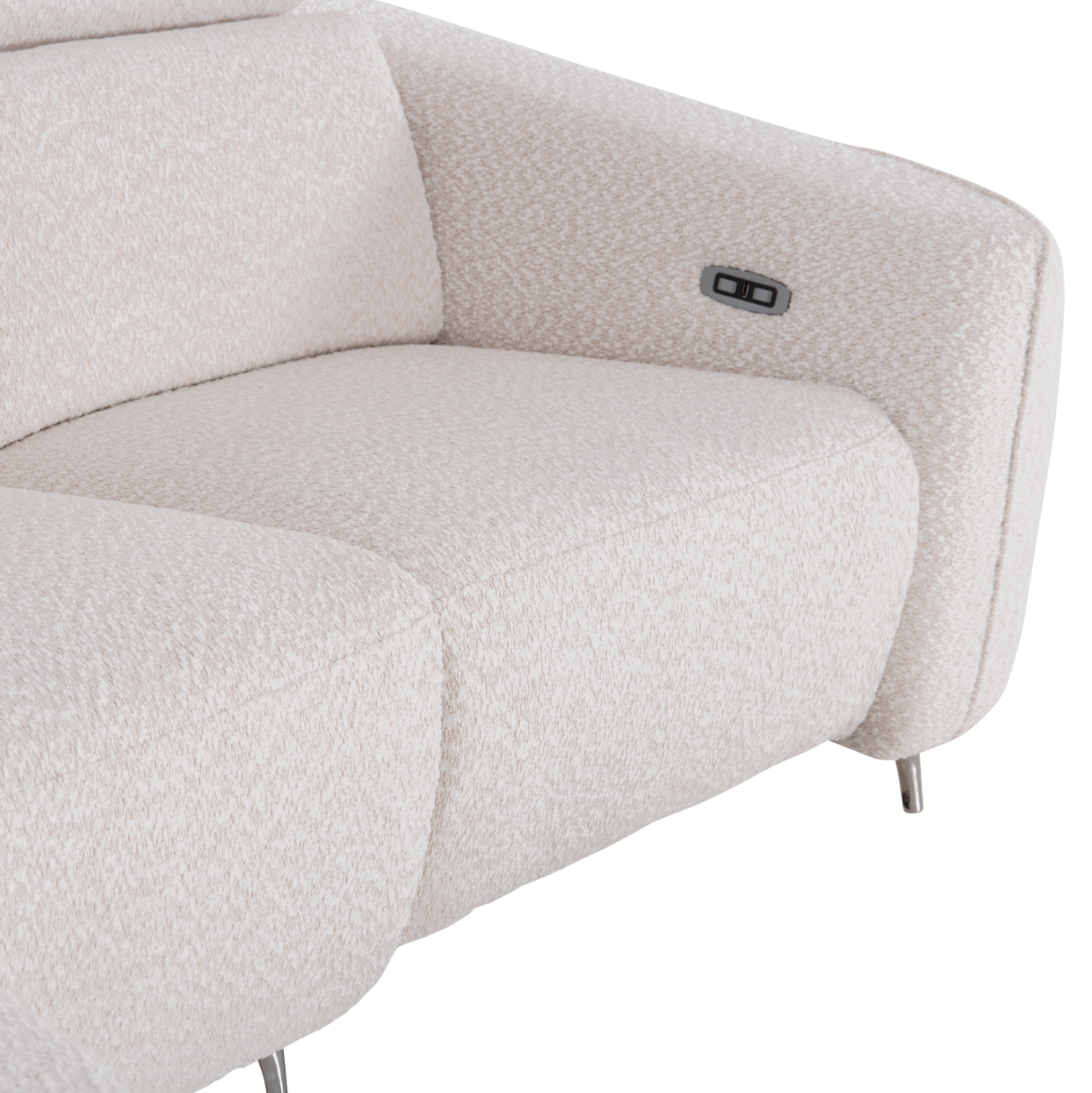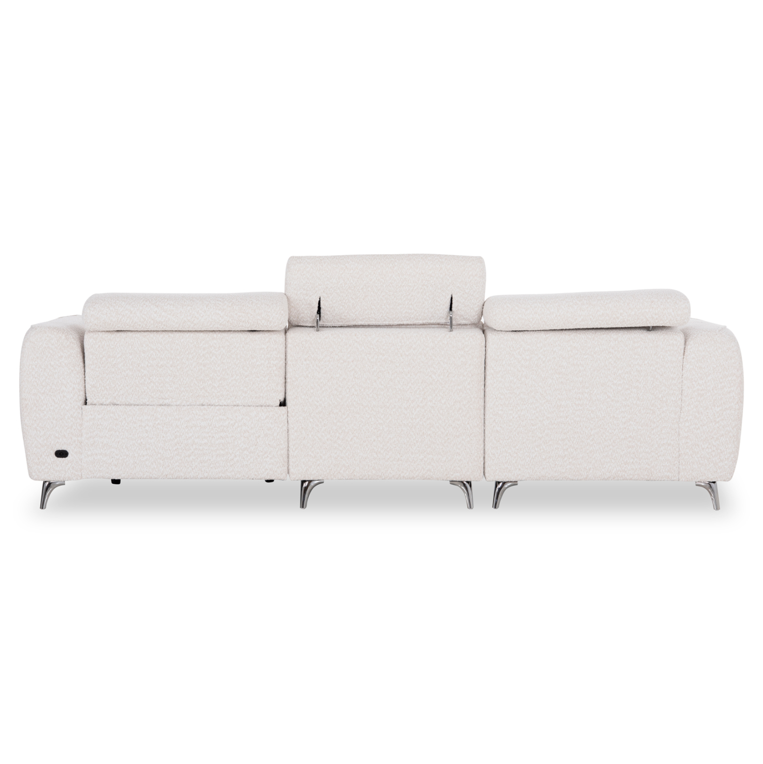 Τα προσκέφαλα και στις τρεις θέσεις διαθέτουν ρυθμιζόμενη ανάκλιση με εύχρηστο χειροκίνητο μηχανισμό, επιτρέποντας την προσαρμογή της θέσης στήριξης σύμφωνα με τις ανάγκες κάθε στιγμής. Παράλληλα, η θέση που βρίσκεται δίπλα στο μπράτσο —και όχι στη γωνία— διαθέτει πλήρη ηλεκτρική ανάκλιση, μετατρέποντας το κάθισμα σε μια πραγματική ζώνη χαλάρωσης με το πάτημα ενός κουμπιού. Οι διακόπτες ελέγχου βρίσκονται διακριτικά τοποθετημένοι στην εσωτερική πλευρά του μπράτσου για εύκολη και άμεση πρόσβαση. Στο ίδιο σημείο υπάρχει και θύρα USB, προσφέροντας τη δυνατότητα φόρτισης συσκευών και ενισχύοντας την πρακτικότητα του καναπέ στην καθημερινότητα.