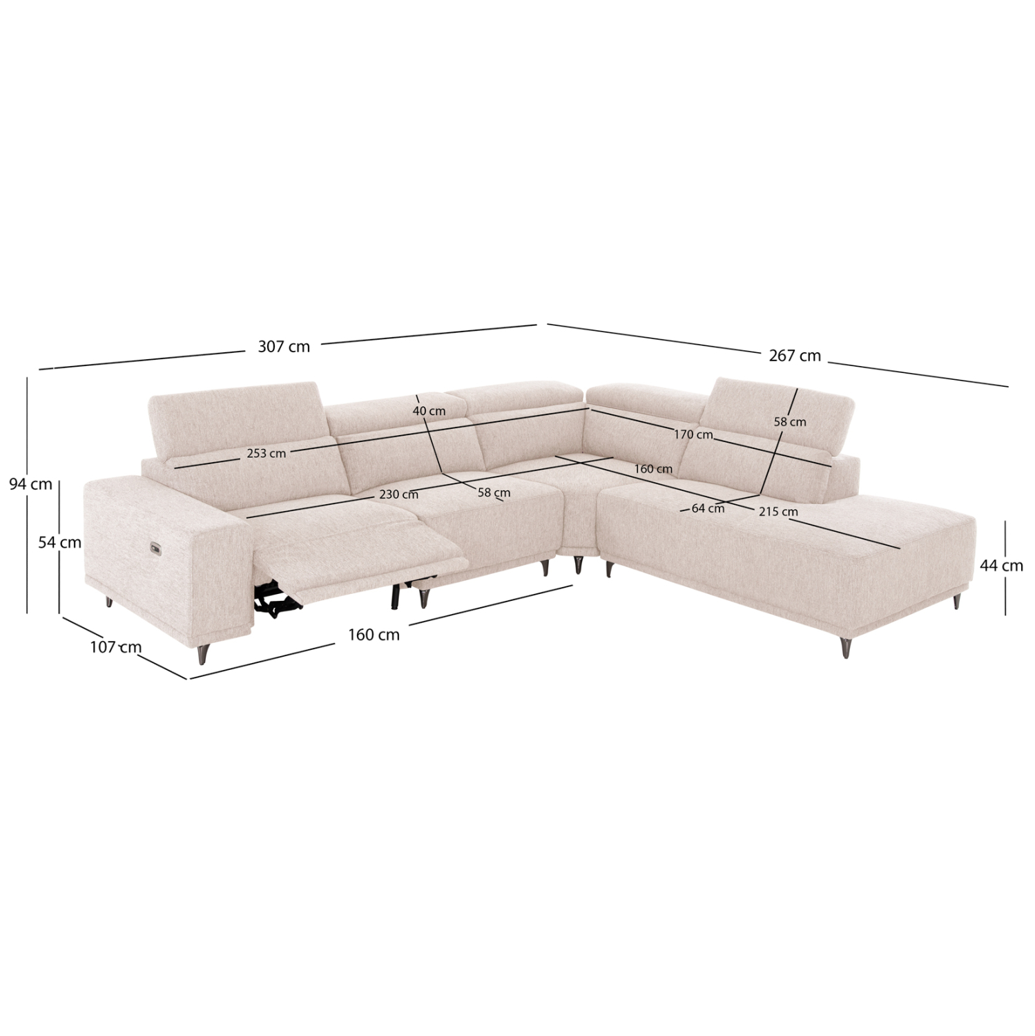 ΚΑΝΑΠΕΣ ΔΕΞΙΑ ΓΩΝΙΑ 5Θ ΜΕ RECLINE LUNARIS SM3316.02R ΕΚΡΟΥ ΥΦΑΣΜΑ 307x267x94Yεκ
