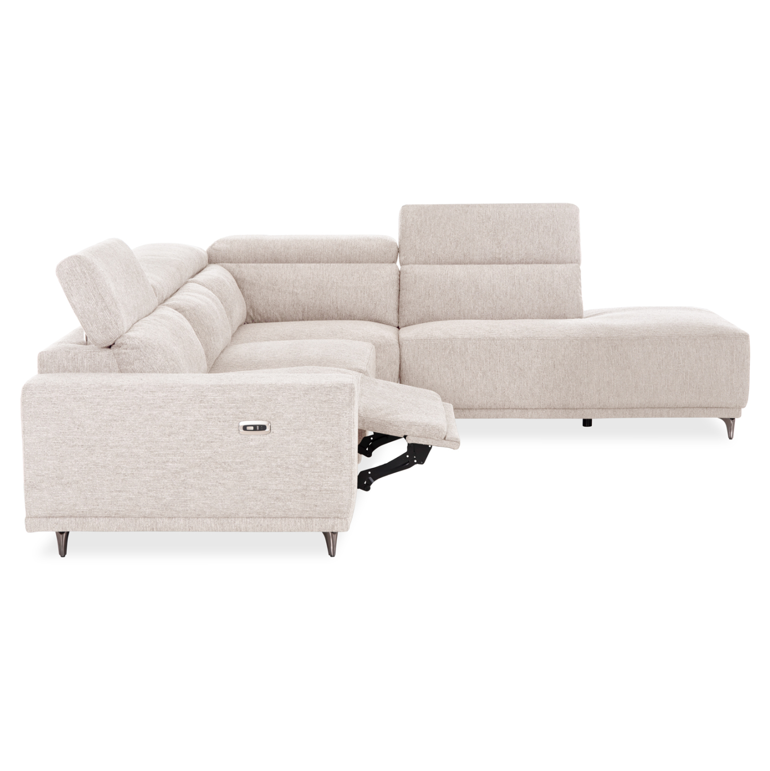 Η θέση που βρίσκεται δίπλα στο μπράτσο —και όχι στη γωνία— διαθέτει ηλεκτρική ανάκλιση που ενεργοποιείται εύκολα μέσω διακοπτών στην εξωτερική πλευρά του μπράτσου, μετατρέποντας το κάθισμα σε μια πραγματική ζώνη χαλάρωσης.