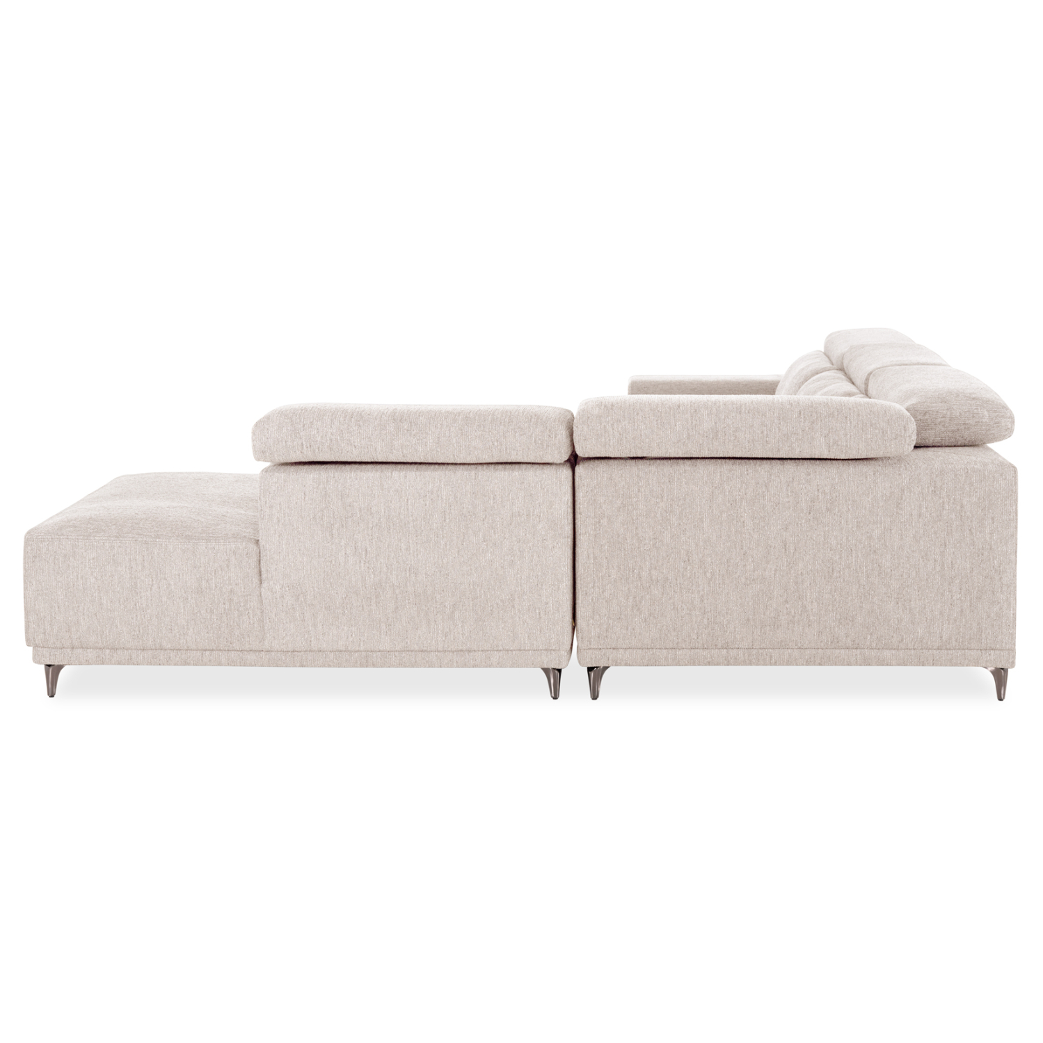 Τα glossy μεταλλικά πόδια αναδεικνύουν τον σύγχρονο χαρακτήρα του καναπέ, ενώ το φαρδύ μπράτσο στη μία πλευρά προσθέτει επιπλέον άνεση και λειτουργικότητα. Παράλληλα, τα προσκέφαλα και στις πέντε θέσεις διαθέτουν ρυθμιζόμενη ανάκλιση με εύχρηστο χειροκίνητο μηχανισμό, επιτρέποντας την προσαρμογή της στήριξης σύμφωνα με τις ανάγκες κάθε χρήστη.