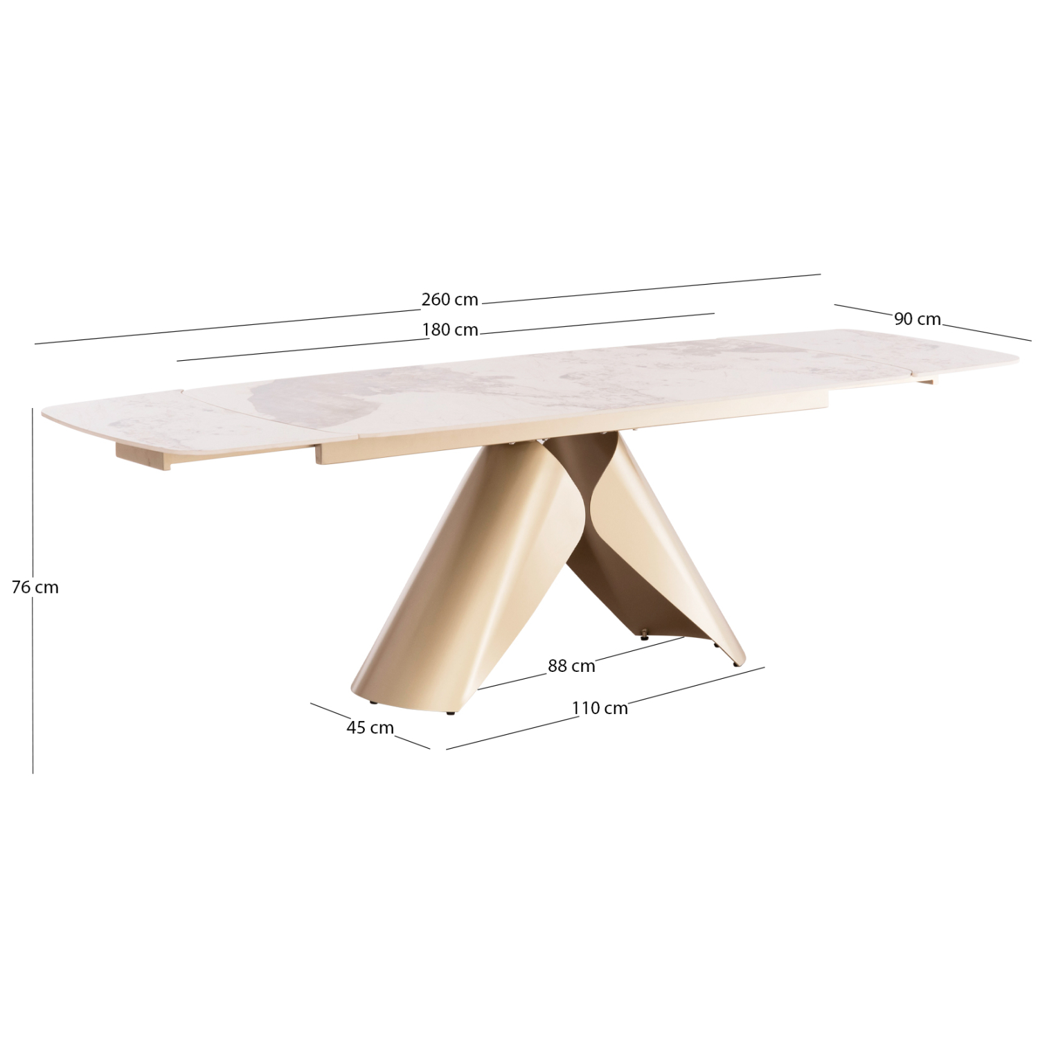 DINING TABLE EXTENDABLE HYPERION SM18097.02 CERAMIC TOP-METAL LEGS IN CHAMPAGNE COLOR 180(40+40)x90x76Hcm.