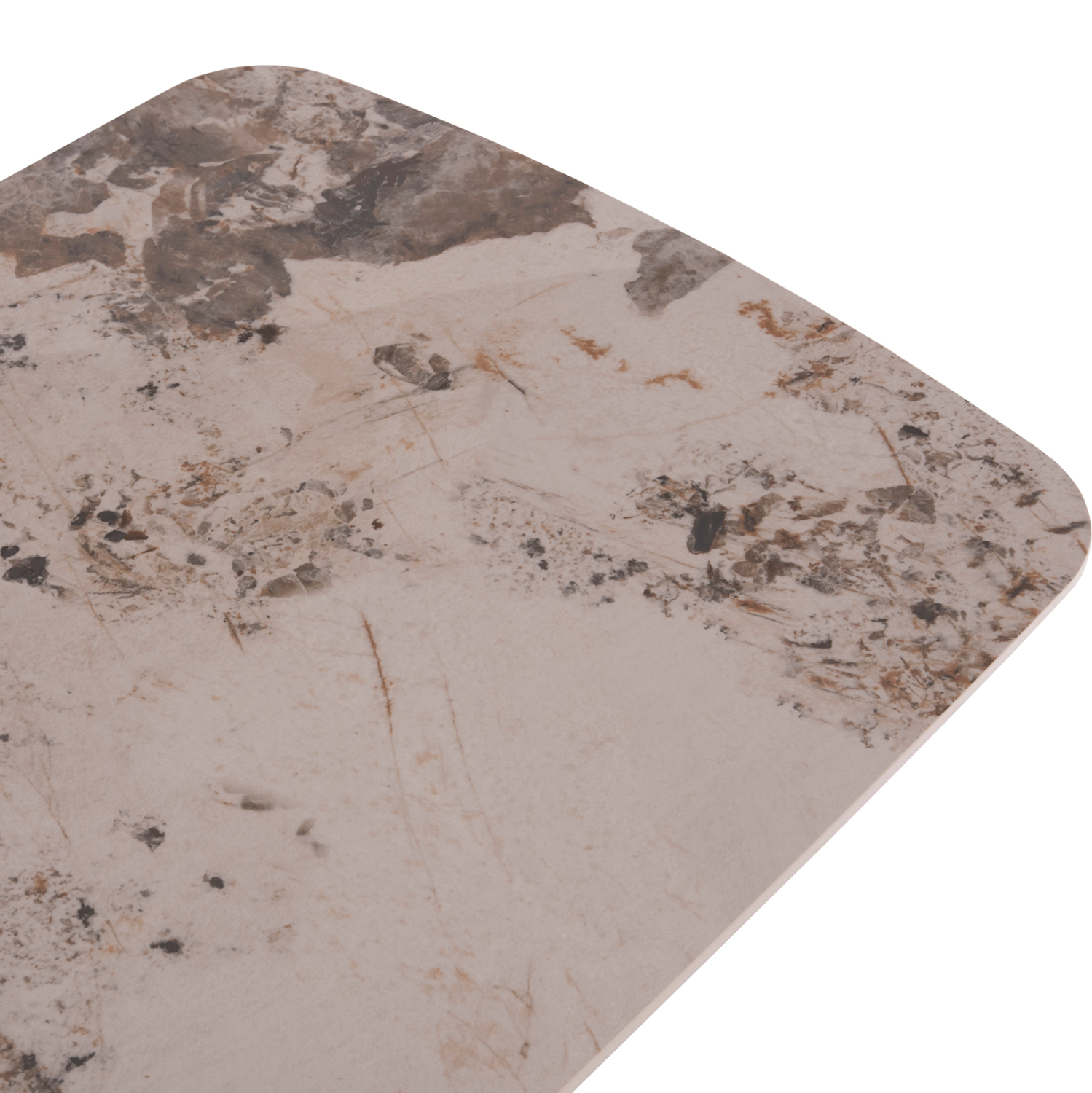 The ceramic material is made by heating and cooling natural clay, resulting in a hard and heat-resistant surface. Ceramic materials are a) Resistant to Scratches: Ceramics possess a hard surface that withstands scratches and dents. b) Heat Resistant: One of the unique qualities of ceramic tables is their natural resistance to heat. c) Easy to Clean: The non-porous nature of ceramic makes cleaning a breeze.
