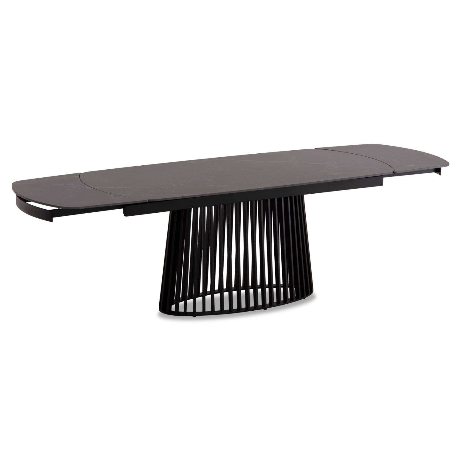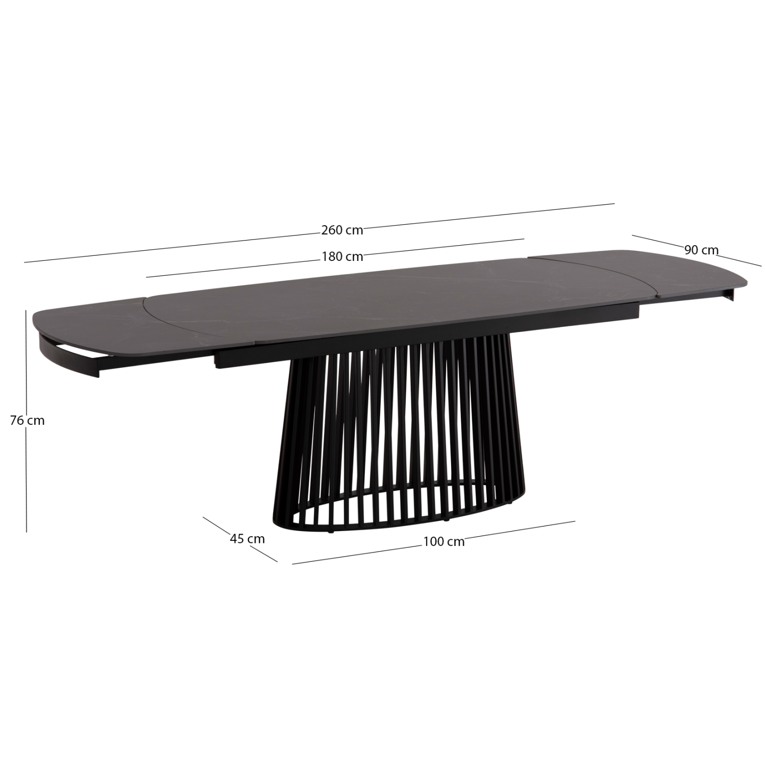 DINING TABLE EXTENDABLE MEMNON SM18098 CERAMIC TOP-METAL IN BLACK 180(40+40)x90x76Hcm.