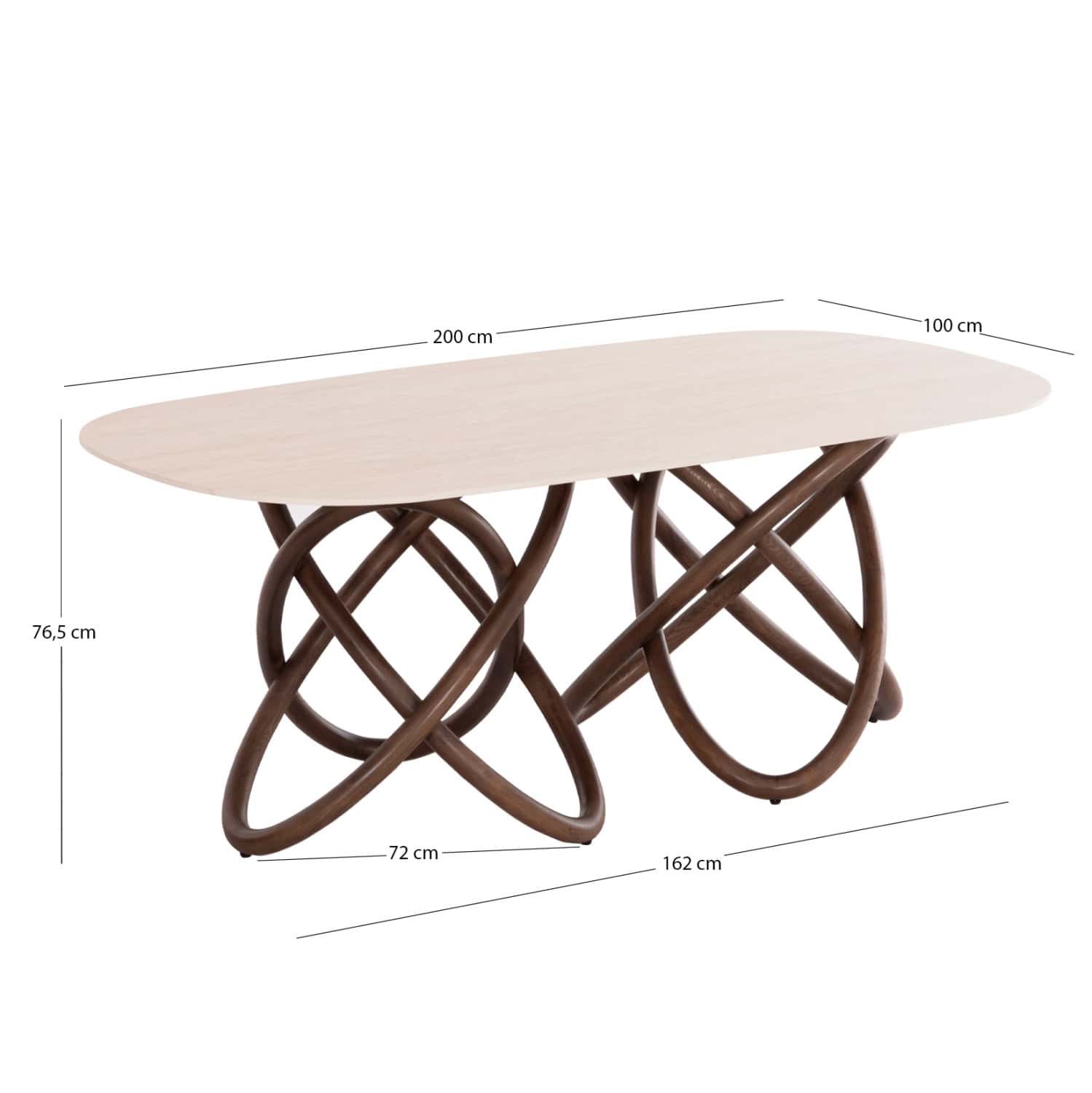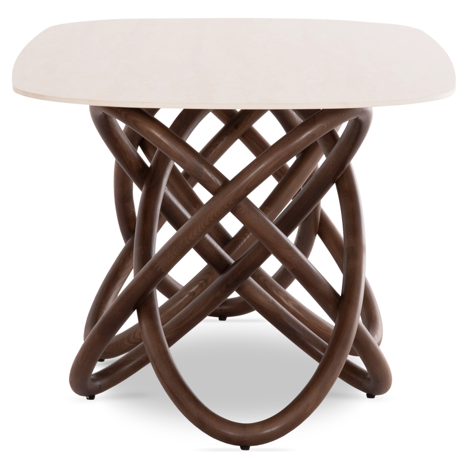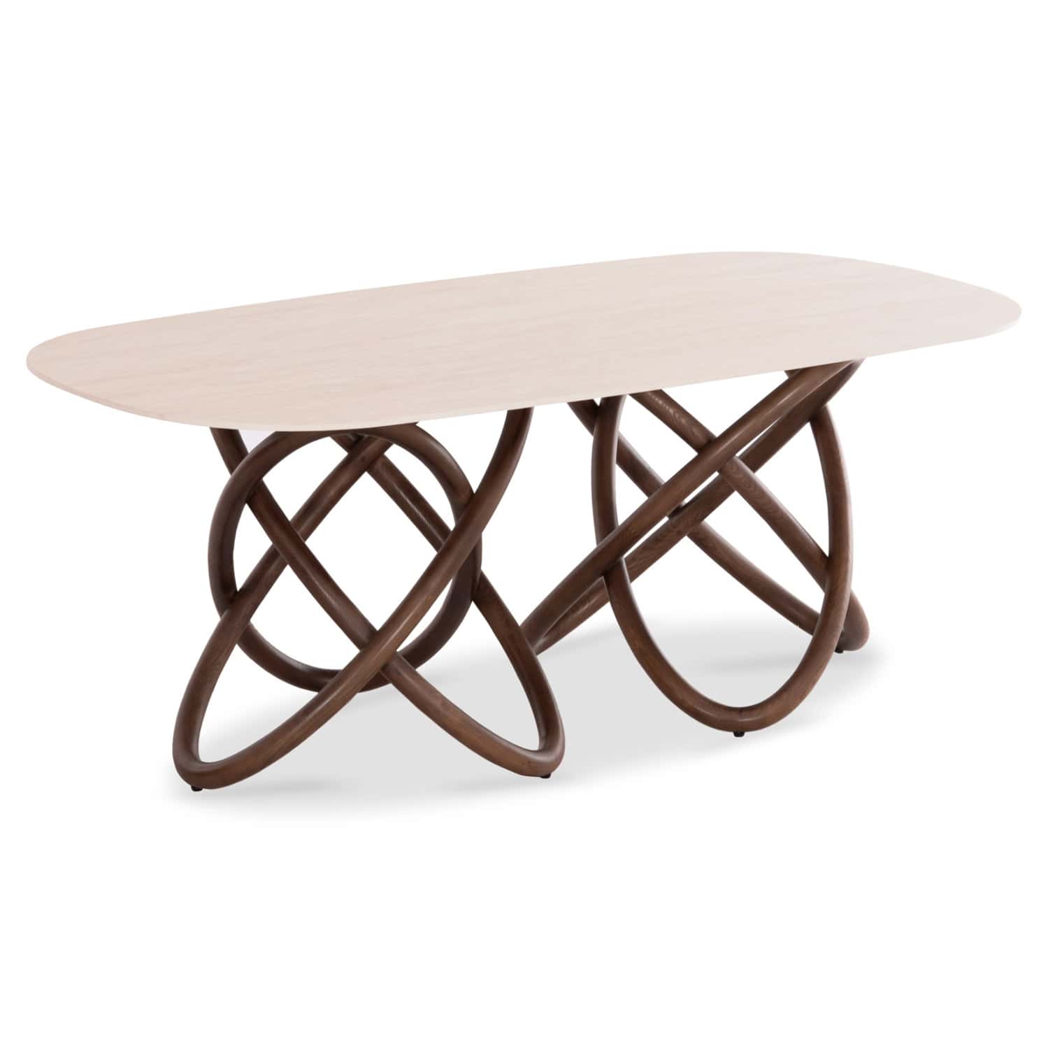 SYMETRON presents the new dining table ORBITER! A table with unparalleled quality of construction materials, but also a unique design, will be the point of reference in any space. This particular dining table, therefore, features a beveled ceramic tabletop in a shade of CREAM travertine! However, what catches the eye are the legs/bases of the table, which are made of ash wood in WALNUT color and sport an “orbiting” rings design, which complete the image and enhance the luxury that is evident in every inch of this table!