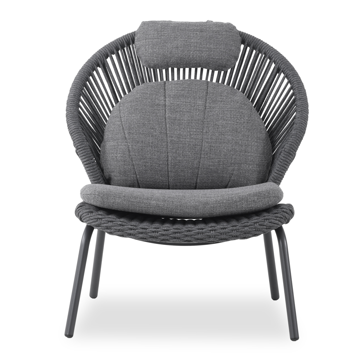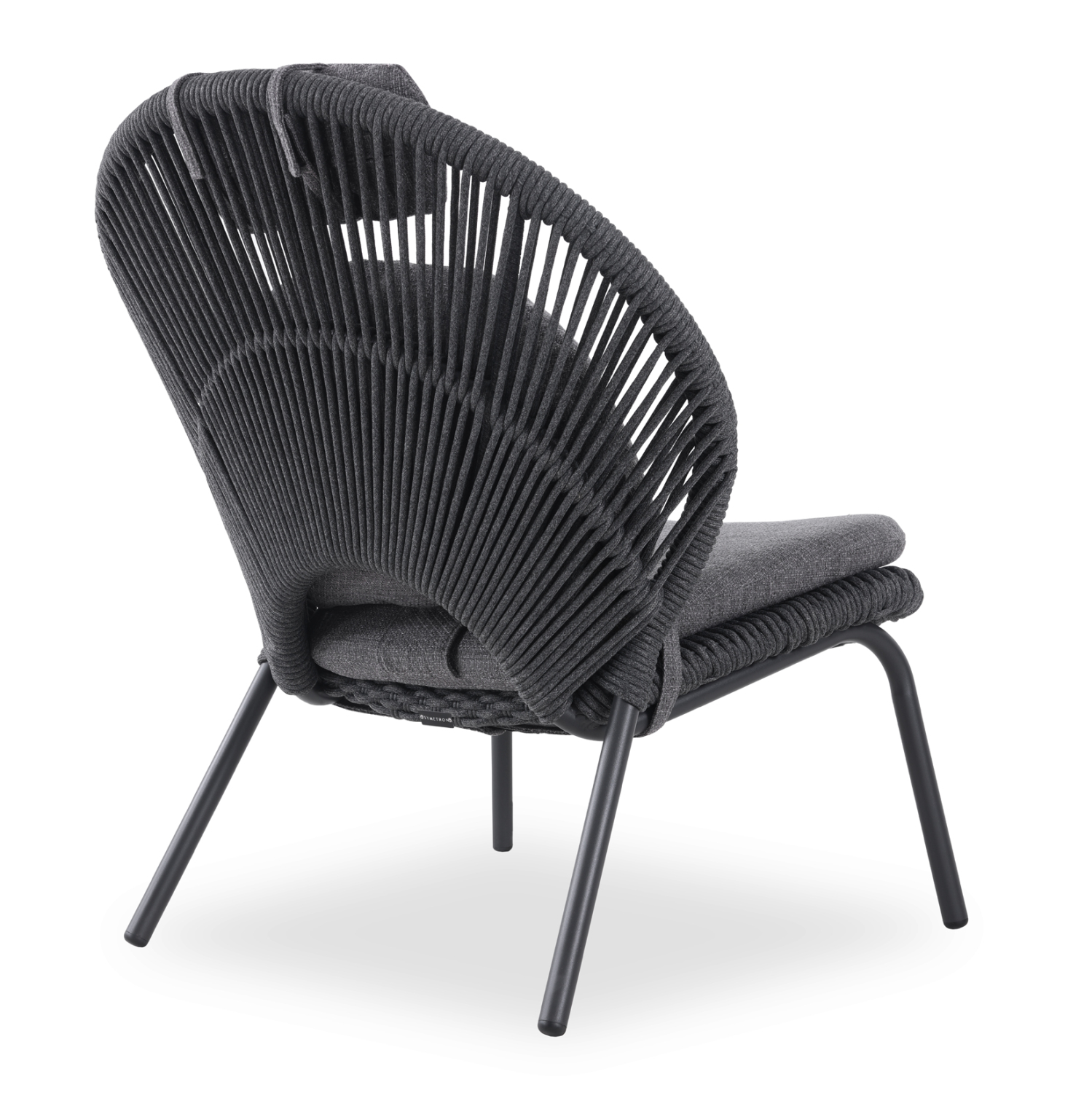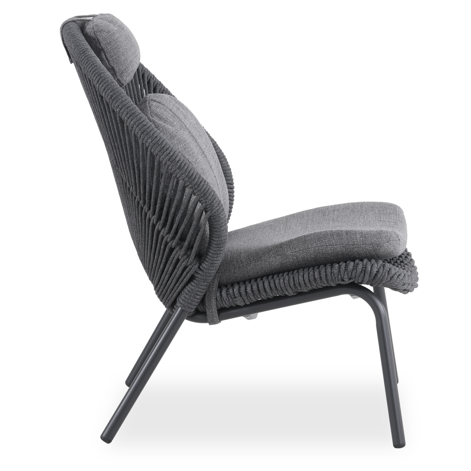 SYMETRON presents the new lounge chair with footrest set TEMPORAL in CHARCOAL color. Made of aluminum and rope as a lining, it exudes luxury and comfort. It stands out for its high back with an independent head cushion and the curved seat, which create a unique image in combination with the same aesthetic footrest!