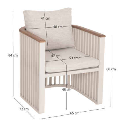 Η πολυθρόνα εξωτερικού χώρου OASIS από την SYMETRON, ακολουθεί πιστά την φιλοσοφία της που προτάσσει την απαράμιλλη ποιότητα με την ανώτερη αισθητική. Ο σκελετός είναι από ξύλο ακακίας σε ΦΥΣΙΚΟ χρώμα ενώ το πλαίσιο του καθίσματος είναι από αλουμίνιο με επένδυση σχοινιού σε ΜΠΕΖ χρώμα. Τα καλύμματα στα μαξιλάρια είναι και αυτά σε ΜΠΕΖ χρώμα ταιριάζοντας απόλυτα με το υπόλοιπο σύνολο. Η αισθητική και τα γήινα χρώματα κάθε σπιθαμής αυτής της πολυθρόνας, θα μαγνητίσουν όλα τα βλέμματα.