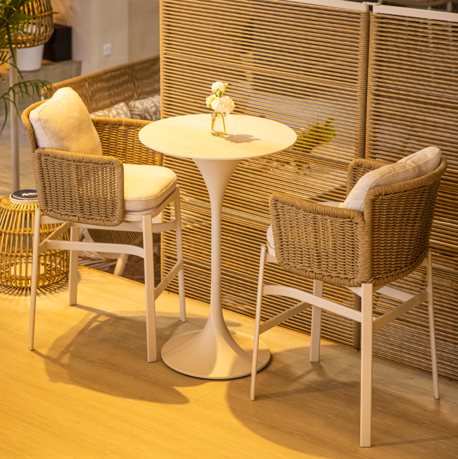 SYMETRON presents a luxurious aluminum bar stool from the DESTINY series. A series that, along with others, raises the bar of quality and aesthetics that we offer to you, both for the home and for any similar professional space! With unparalleled quality of construction and materials, it will upgrade the image in any space you wish. The frame as well as the seat and back cushions are in IVORY color, while the arms and back are upholstered with rattan in wicker weave.