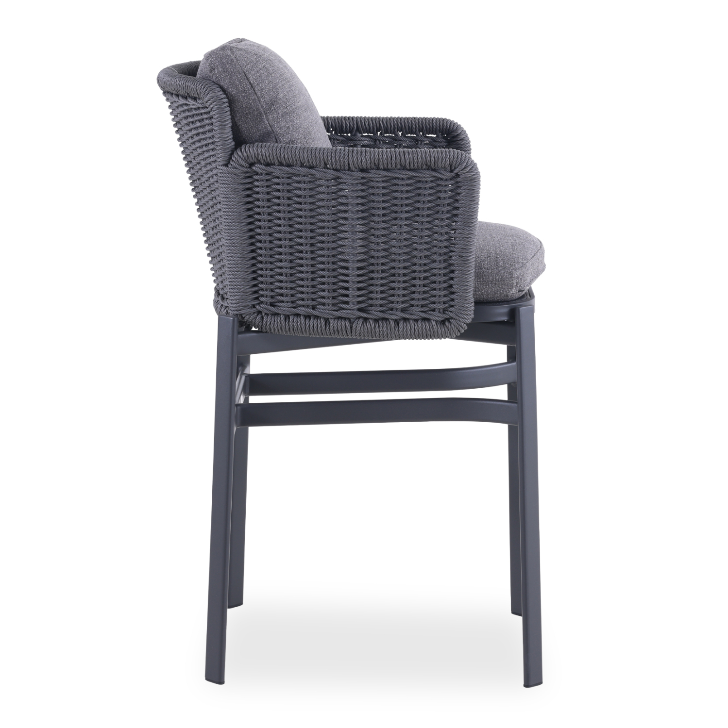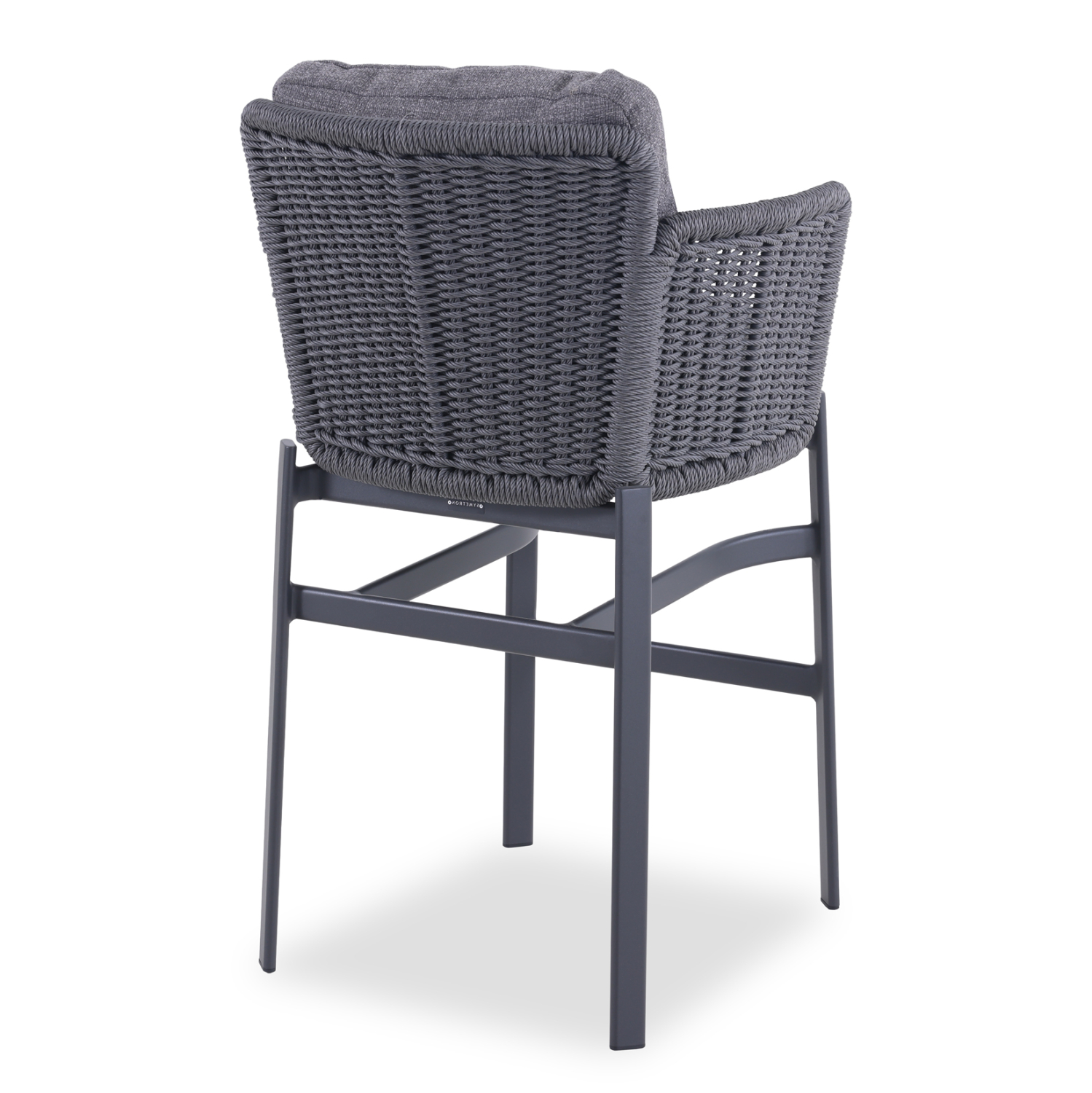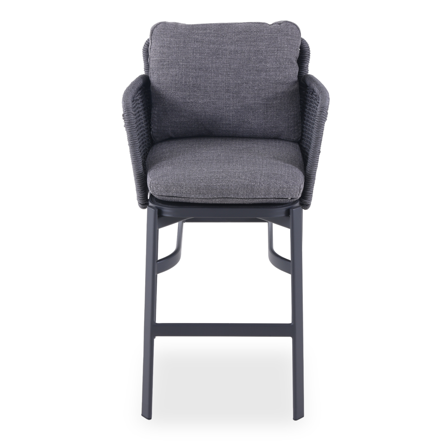 SYMETRON presents a luxurious aluminum bar stool from the DESTINY series. A series that, along with others, raises the bar of quality and aesthetics that we offer to you, both for the home and for any similar professional space! With unparalleled quality of construction and materials, it will upgrade the image in any space you wish. The frame is in CHARCOAL color, while the arms and back are upholstered with rattan in a wicker weave in dark GREY color, as are the cushion covers.