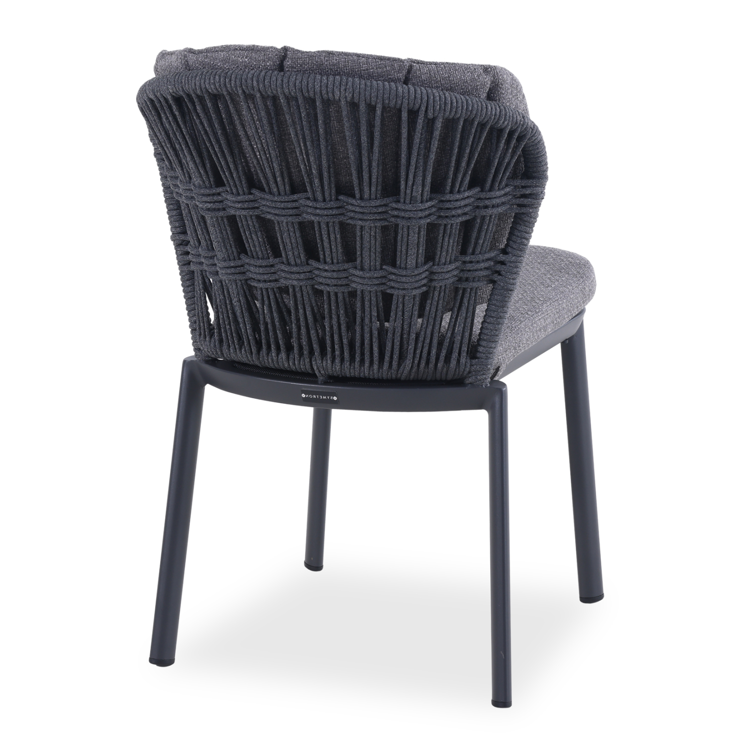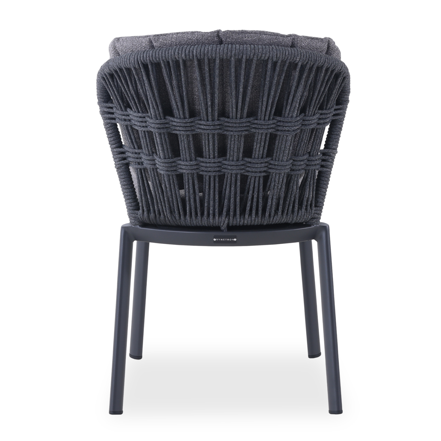 SYMETRON presents the new dining chair GOFFEN. Made of aluminum, it is lightweight, ideal for outdoor spaces. The curved back of the chair is made of braided rope and has cushions on both the seat and back. The main color of the chair is CHARCOAL.