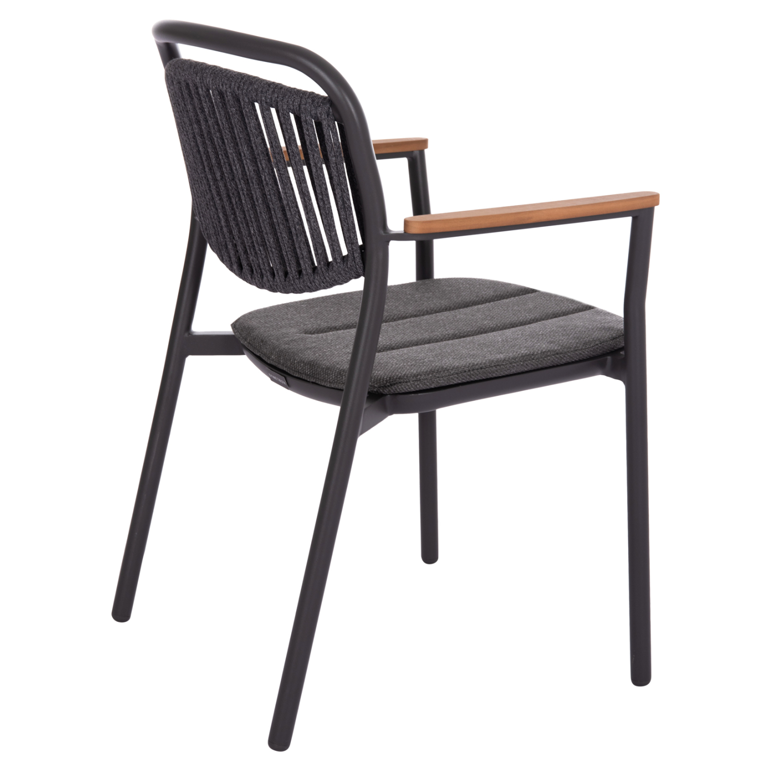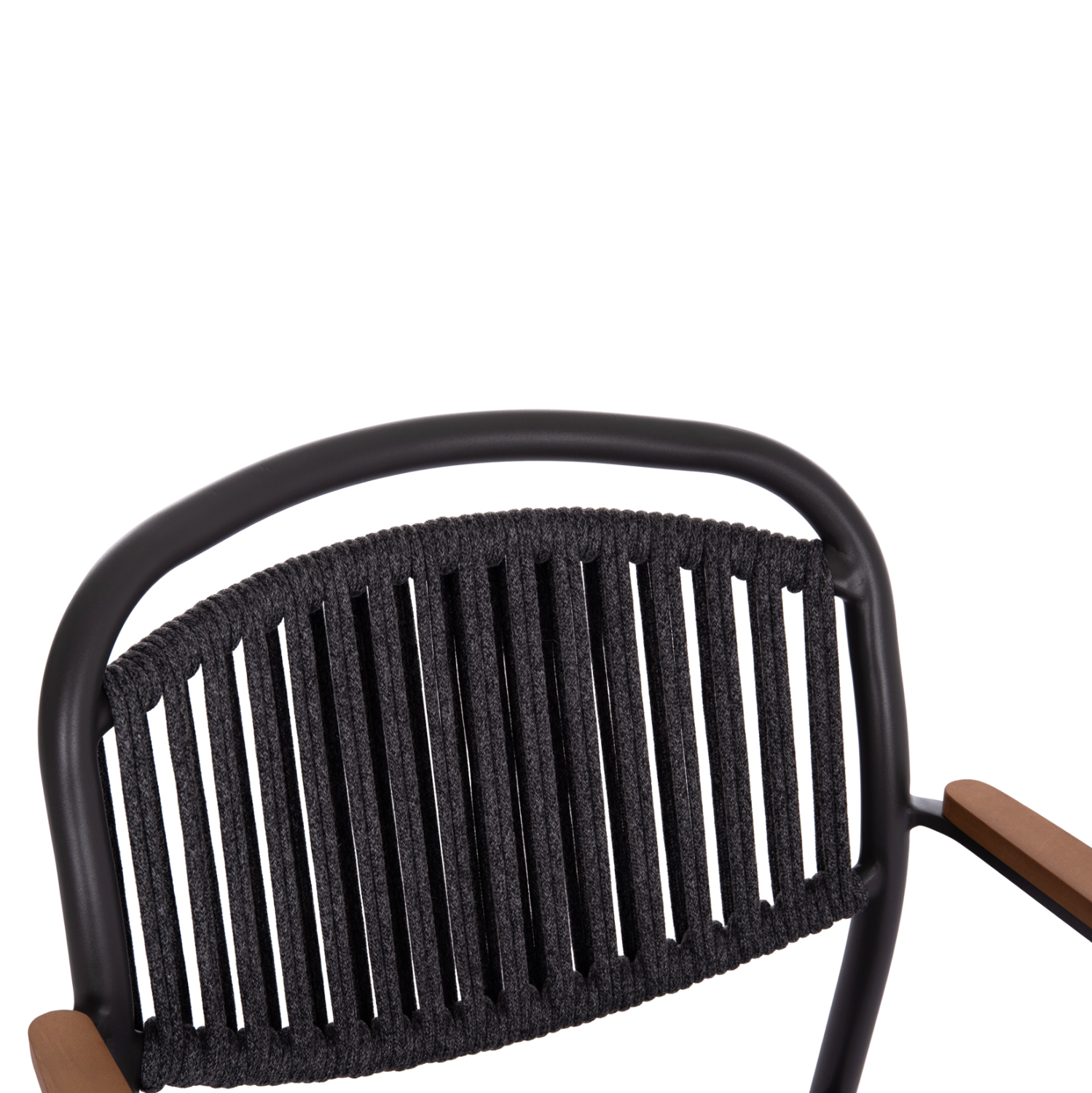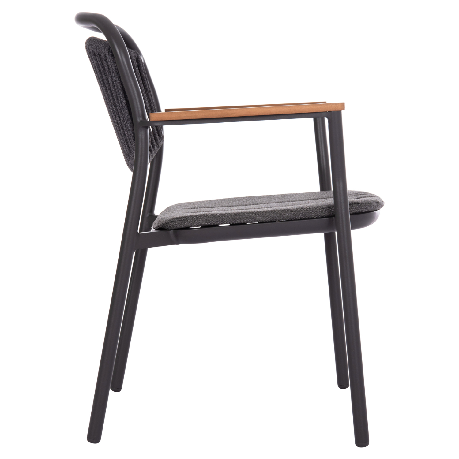 Η πολυθρόνα τραπεζαρίας αλουμινίου DEXTER της SYMETRON είναι αυτό που πάντα θέλατε για τον εξωτερικό σας χώρο. Είναι κατασκευασμένη από αλουμίνιο σε ΣΚΟΥΡΟ ΓΚΡΙ χρώμα με όμορφη πλάτη επενδυμένη με πολυεστερικό σχοινί. Το κάθισμα διαθέτει μαξιλάρι επενδυμένο με ύφασμα OLEFIN, στο ίδιο χρώμα. Η πινελιά με το ξύλο teak που «ντύνει» τα μπράτσα προσδίδει στην καρέκλα επιπλέον κύρος αλλά και ομορφιά.