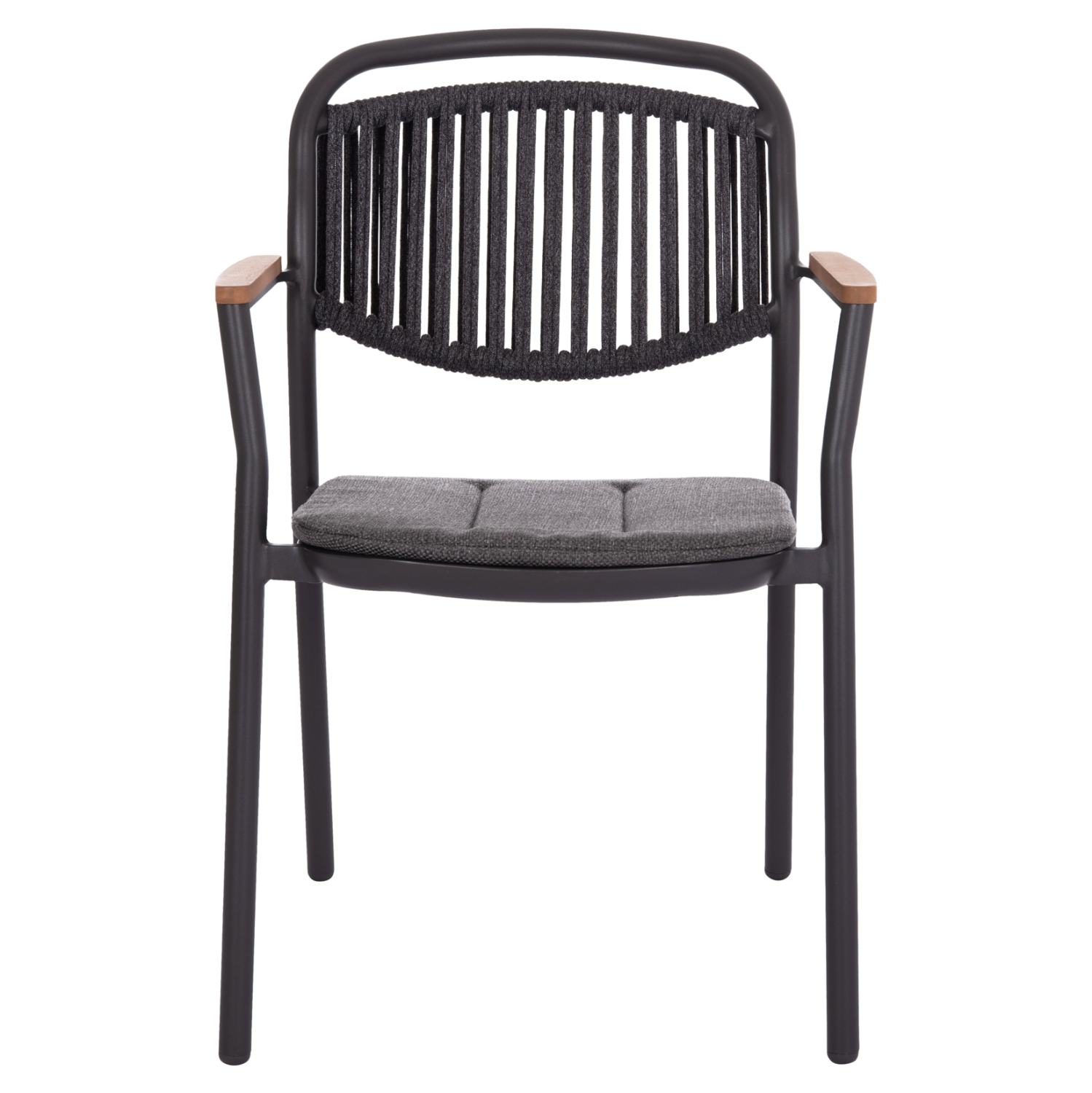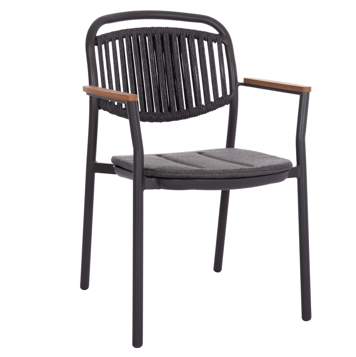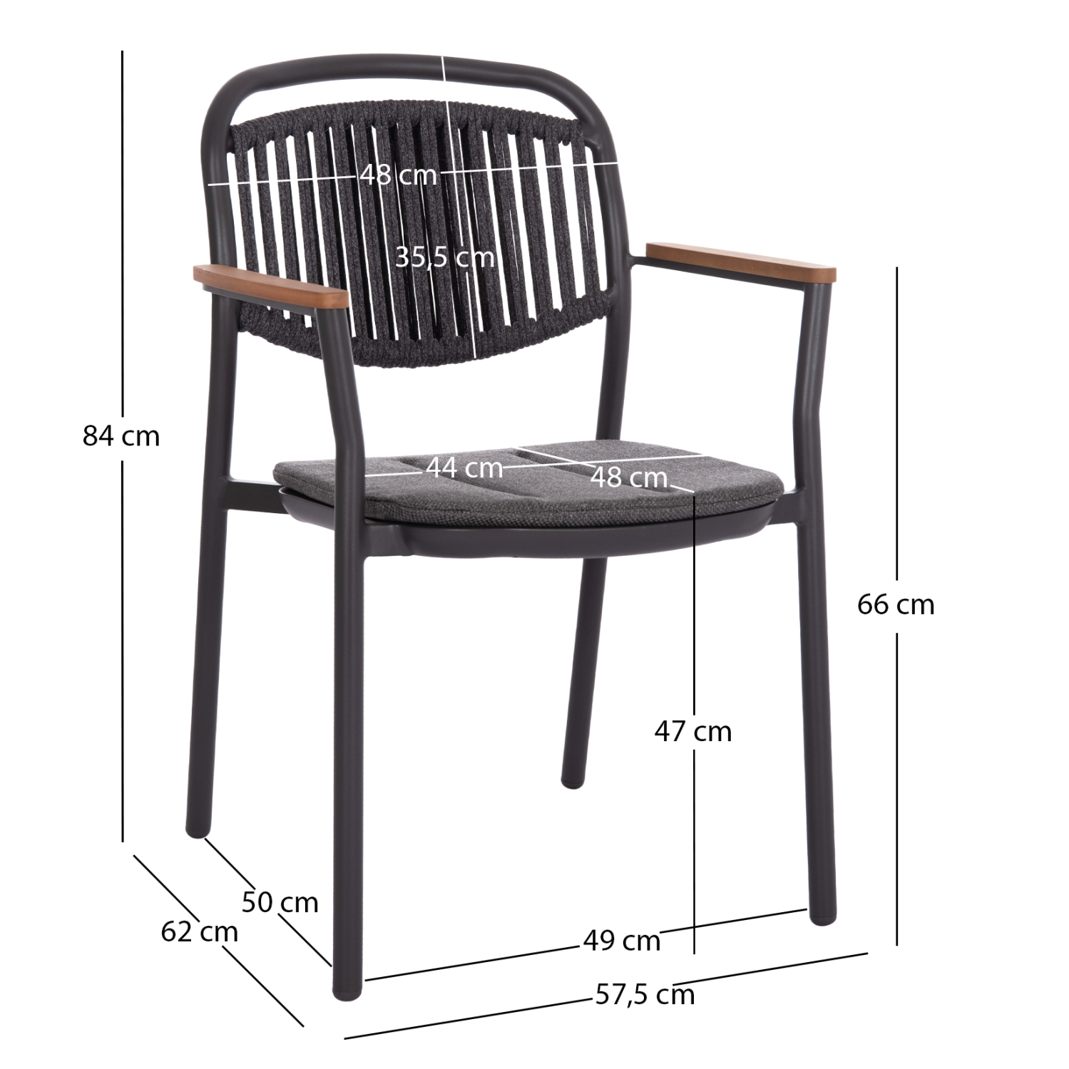 Η πολυθρόνα τραπεζαρίας αλουμινίου DEXTER της SYMETRON είναι αυτό που πάντα θέλατε για τον εξωτερικό σας χώρο. Είναι κατασκευασμένη από αλουμίνιο σε ΣΚΟΥΡΟ ΓΚΡΙ χρώμα με όμορφη πλάτη επενδυμένη με πολυεστερικό σχοινί. Το κάθισμα διαθέτει μαξιλάρι επενδυμένο με ύφασμα OLEFIN, στο ίδιο χρώμα. Η πινελιά με το ξύλο teak που «ντύνει» τα μπράτσα προσδίδει στην καρέκλα επιπλέον κύρος αλλά και ομορφιά.