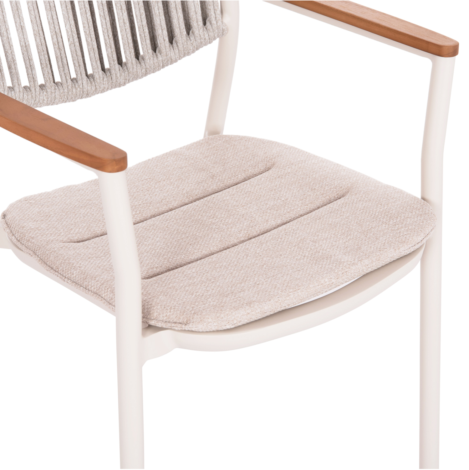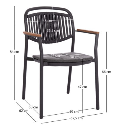Η πολυθρόνα τραπεζαρίας αλουμινίου DEXTER της SYMETRON είναι αυτό που πάντα θέλατε για τον εξωτερικό σας χώρο. Είναι κατασκευασμένη από αλουμίνιο σε ΚΡΕΜ χρώμα με όμορφη πλάτη επενδυμένη με πολυεστερικό σχοινί σε ΜΠΕΖ. Το κάθισμα διαθέτει μαξιλάρι επενδυμένο με ύφασμα OLEFIN, επίσης σε ΜΠΕΖ χρώμα. Η πινελιά με το ξύλο teak που «ντύνει» τα μπράτσα προσδίδει στην καρέκλα επιπλέον κύρος αλλά και ομορφιά.