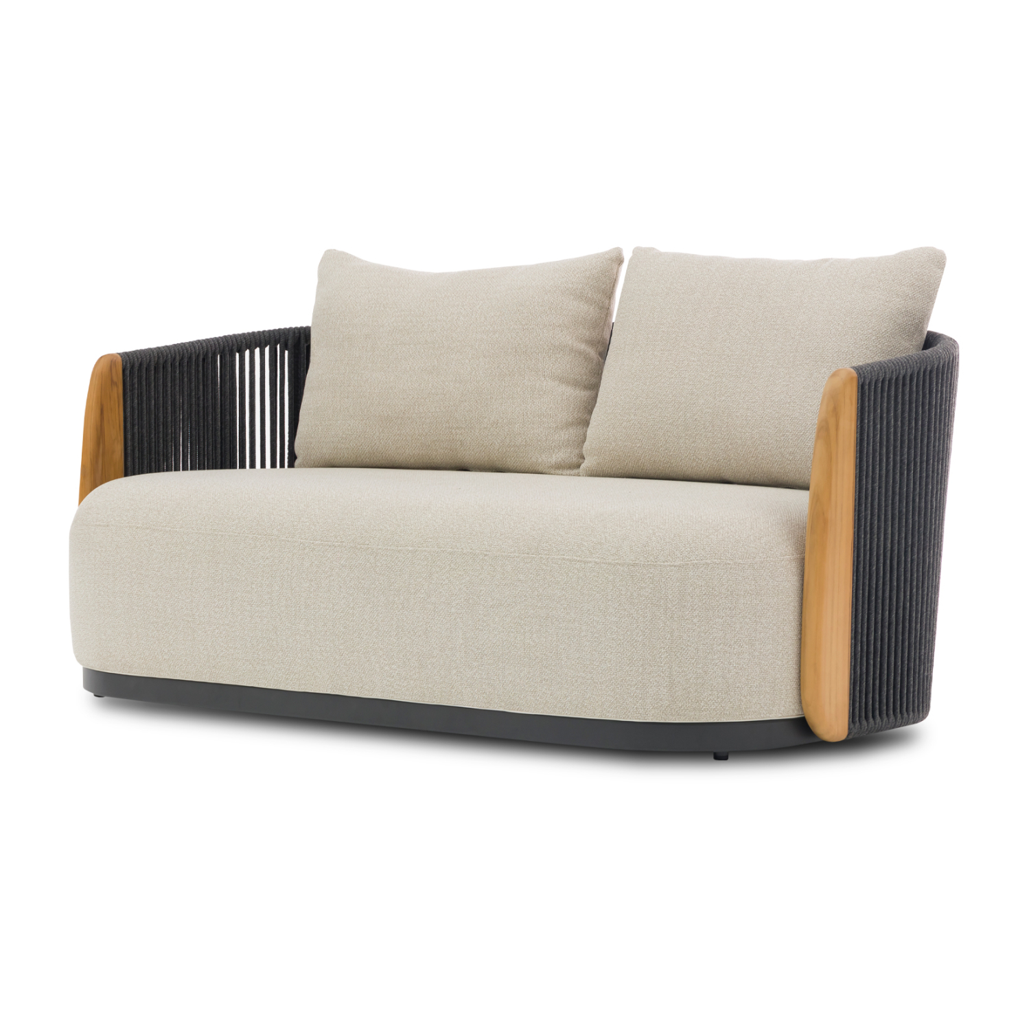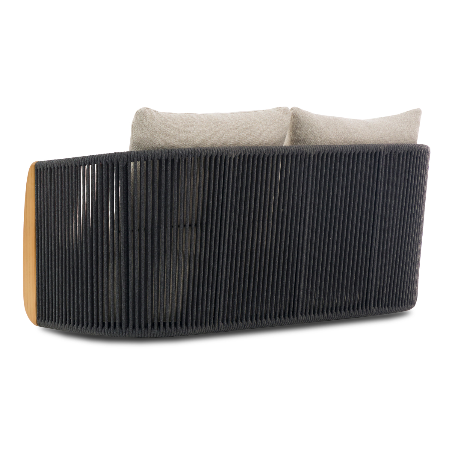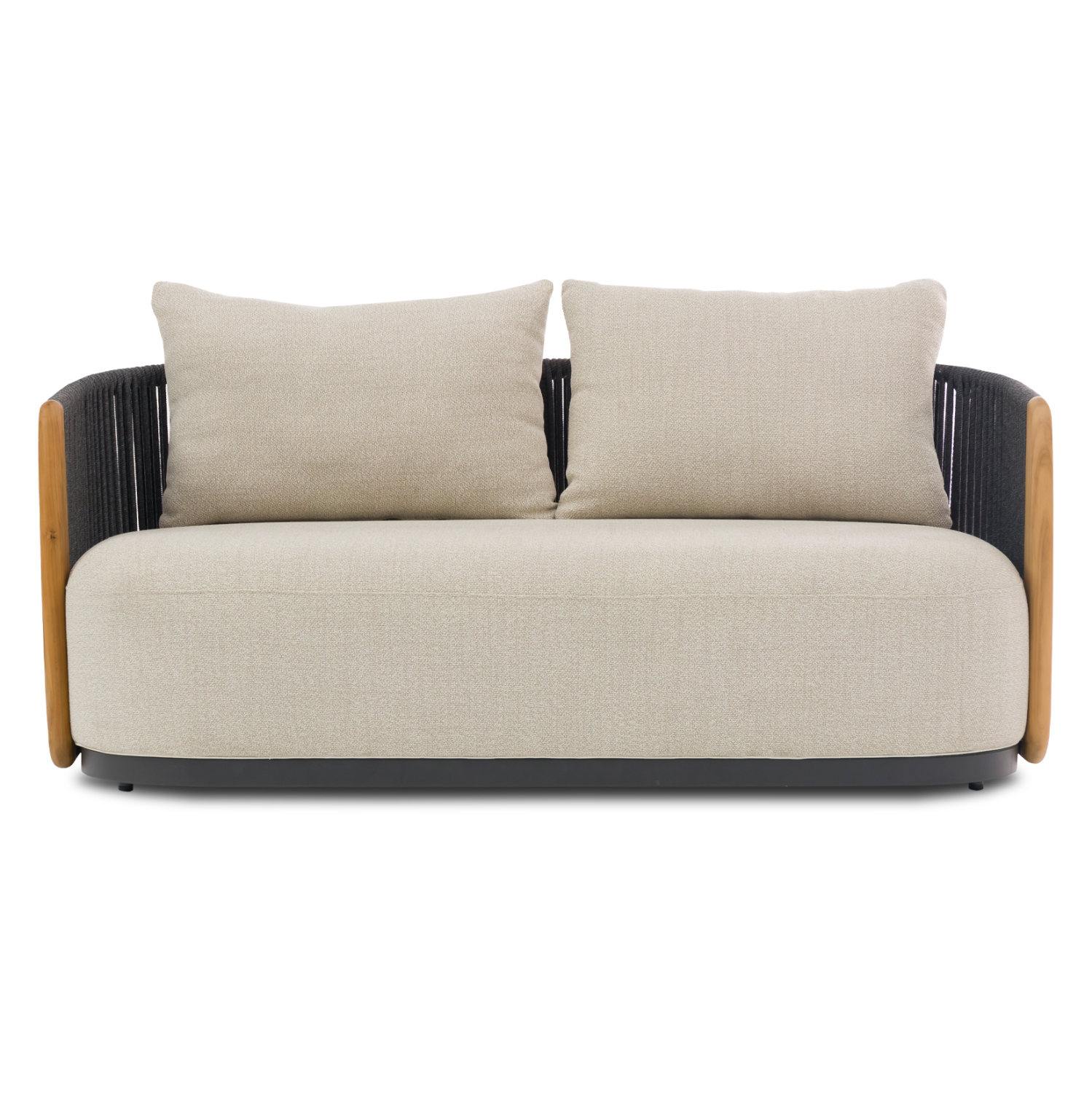 Η σειρά AUGUSTUS, όπως και οι υπόλοιπες της SYMETRON, συνδυάζει την απαράμιλλη ποιότητα των υλικών της και του φινιρίσματός της, αλλάζοντας τα δεδομένα στην κατηγορία. Αυτός ο διθέσιος καναπές για τον εξωτερικό χώρο έχει σκούρο ΓΚΡΙ σκελετό αλουμινίου ενώ τα 2 μαξιλάρια της πλάτης αλλά και το κάθισμα έχουν επένδυση από OLEFIN ύφασμα σε ΜΠΕΖ χρώμα. Η επένδυση του σκελετού με το επίσης σκούρο γκρι σχοινί είναι άλλη μία πινελιά πολυτέλειας, όπως και το κάθετο τμήμα των μπράτσων που είναι κατασκευασμένα από ξύλο TEAK.