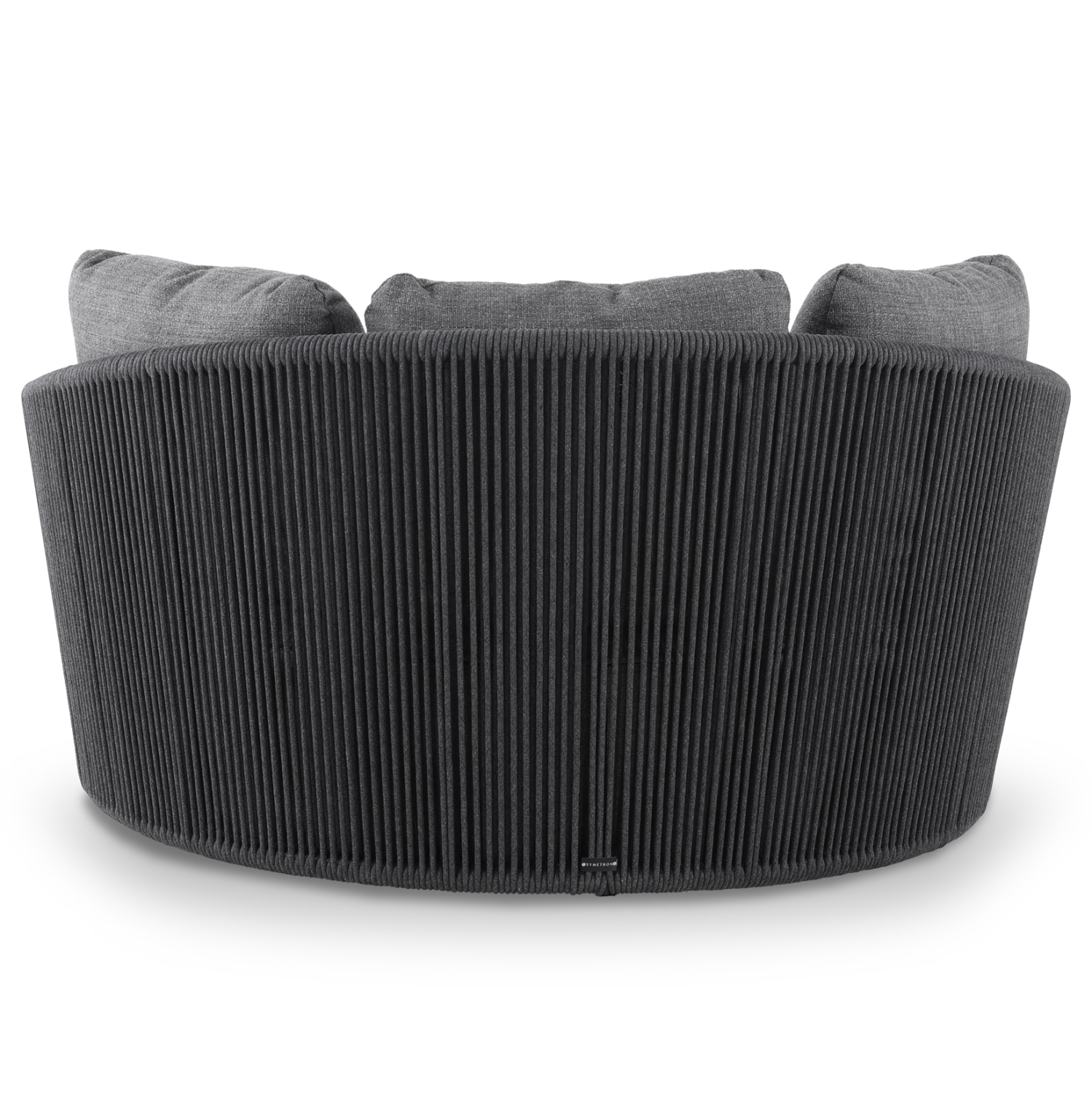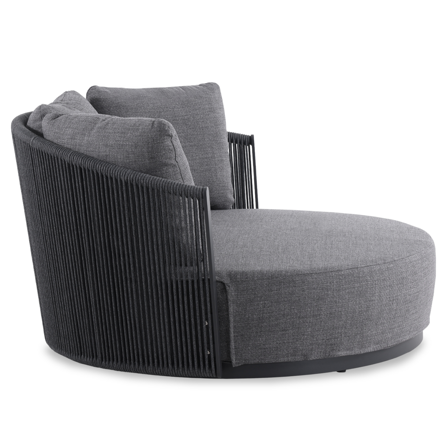 The daybed is made of aluminum, rope and removable cushion covers in imposing CHARCOAL color. Bring the ultimate comfort to your outdoor space in style!