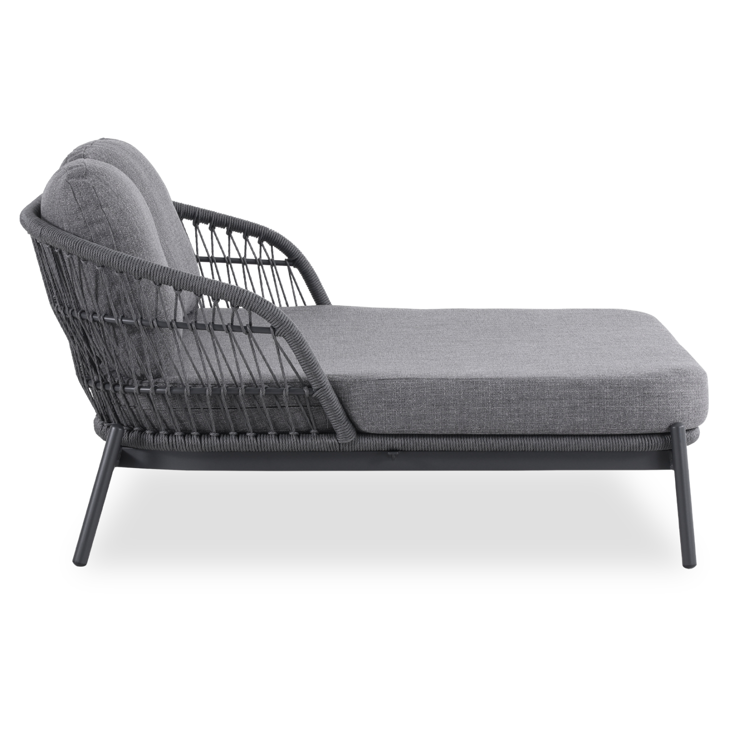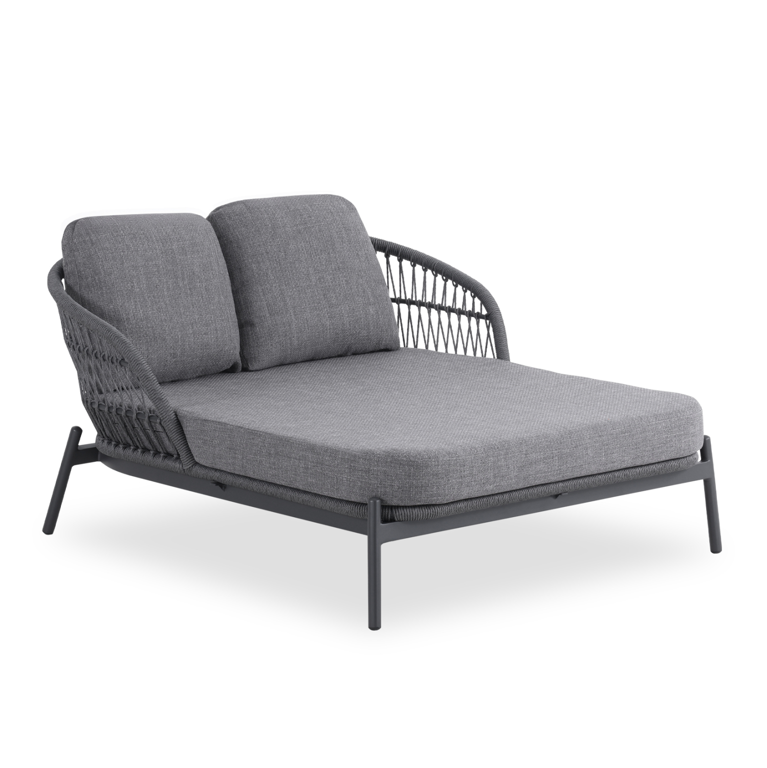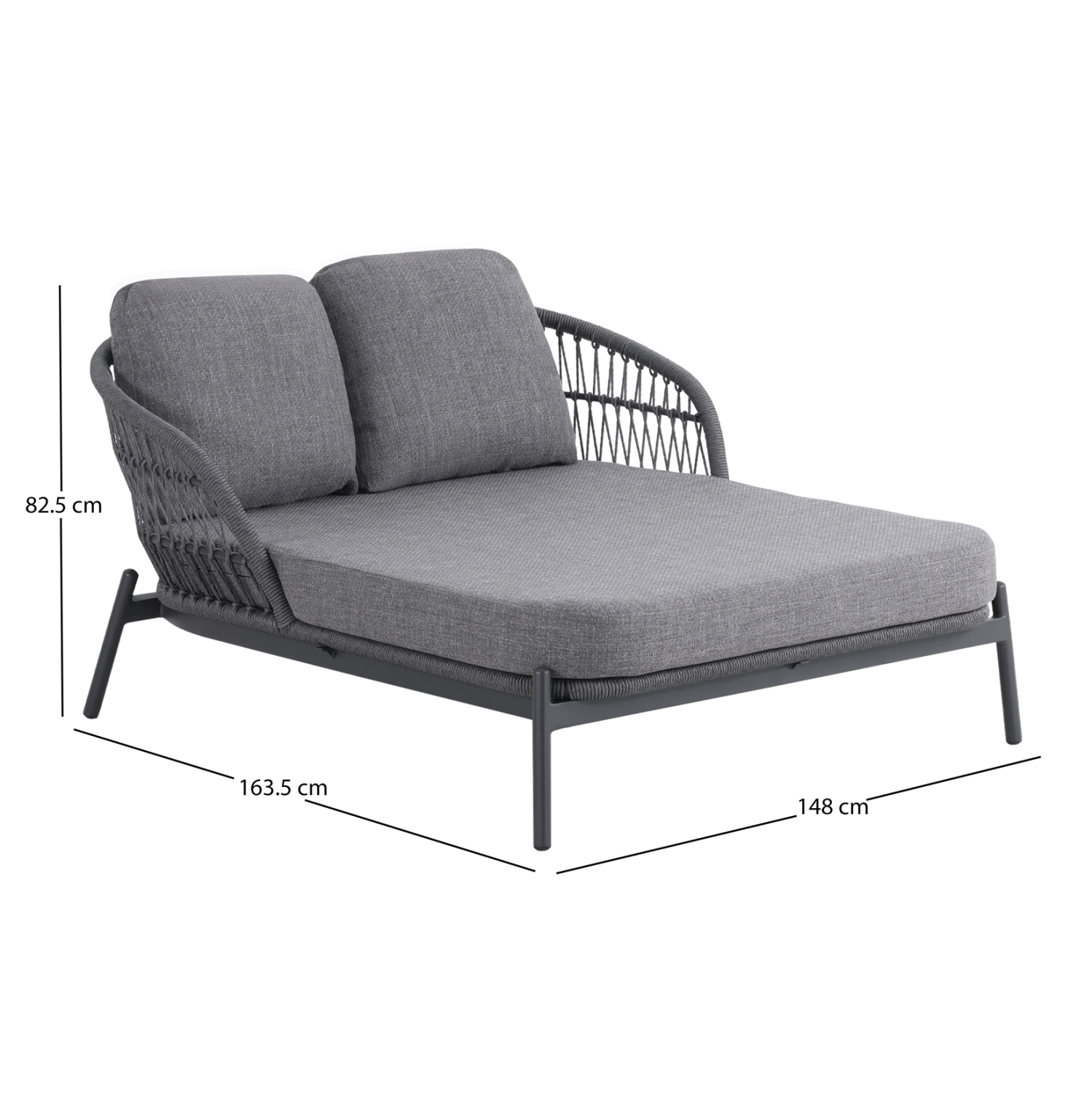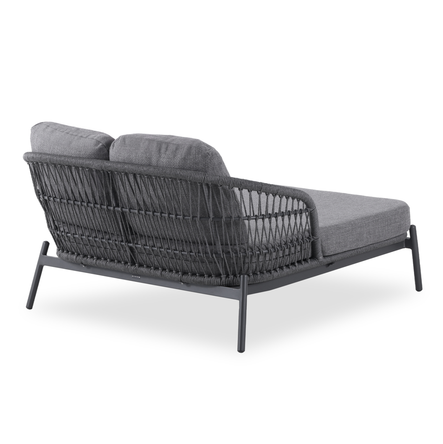 We present to you the luxurious outdoor 2-seater daybed of the QUANTUM series. A series that, together with others, raises the bar of quality and aesthetics that we offer you, both for the home and for any professional space! With unparalleled quality of construction and materials, it will upgrade the image in any space you wish. With an aluminum construction in CHARCOAL color, and P.E. wicker lining in dark GREY color, it will be the point of reference in your outdoor space.