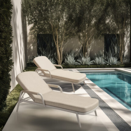 – Καλύμματα μαξιλαριών: OLEFIN υδατοαπωθητικό (πολυεστερικό) ύφασμα ειδικό για εξωτερική χρήση (με φερμουάρ για εύκολη αφαίρεση). Η ίνα olefin είναι μια συνθετική ίνα κατασκευασμένη από διάφορα πλαστικά υλικά. Το ύφασμα που είναι κατασκευασμένο από αυτή την ίνα είναι ισχυρό, δεν ξεβάφει, και είναι ανθεκτικό στην μούχλα, την τριβή και το ηλιακό φως, επειδή διαθέτει προστασία από την υπεριώδη ακτινοβολία που προστίθεται στη διαδικασία κατασκευής. Τα πιο σημαντικά χαρακτηριστικά, ωστόσο, είναι ότι είναι αδιάβροχο και ανθεκτικό στους λεκέδες (αλέκιαστο).
