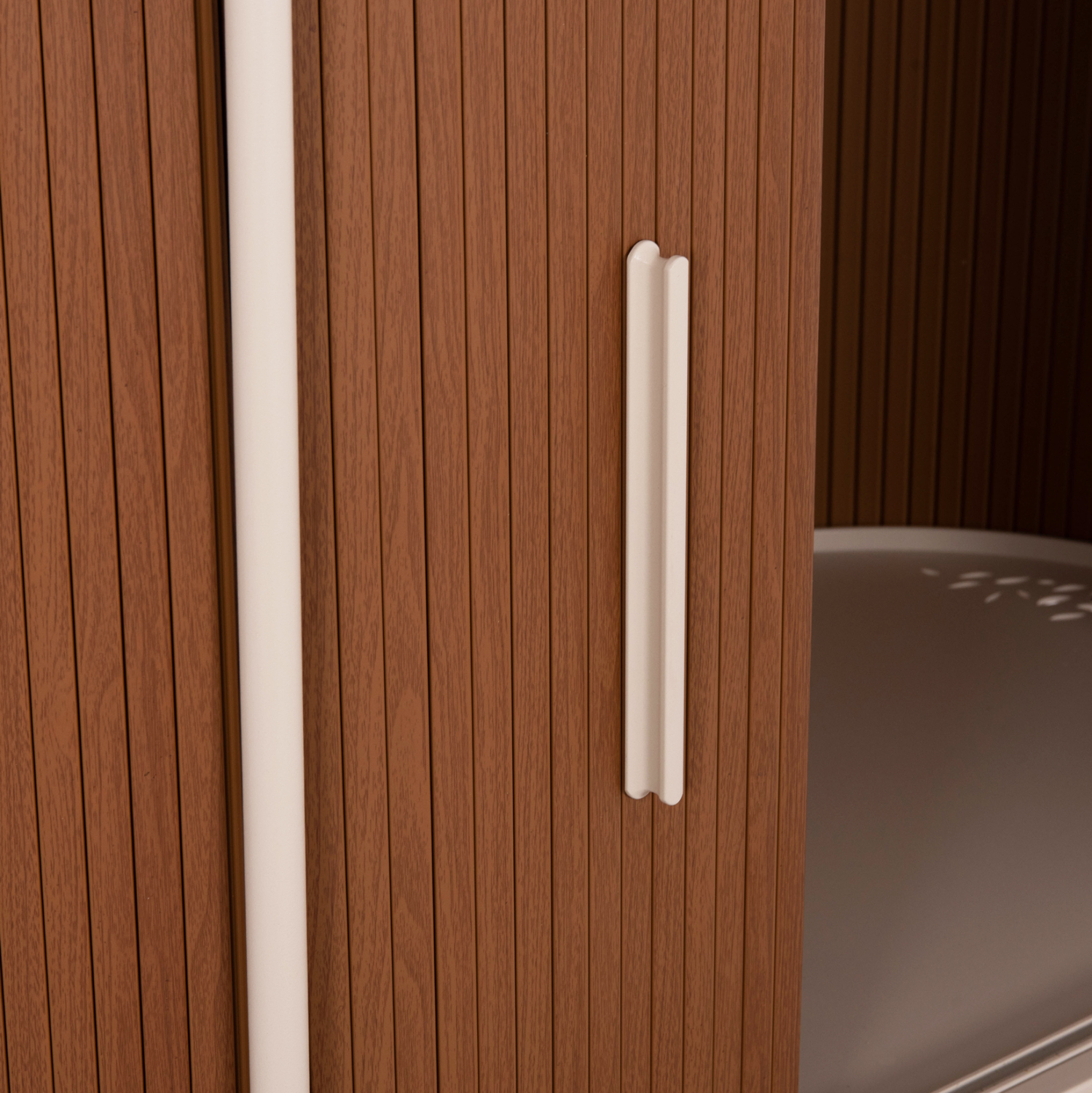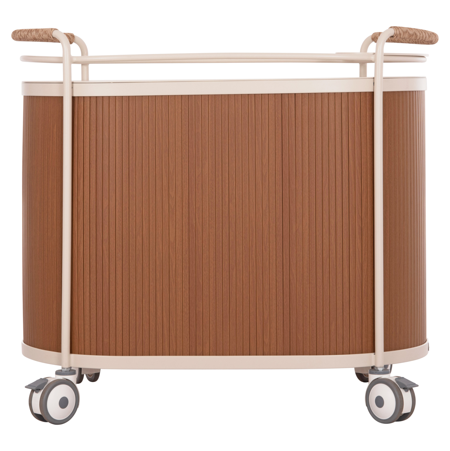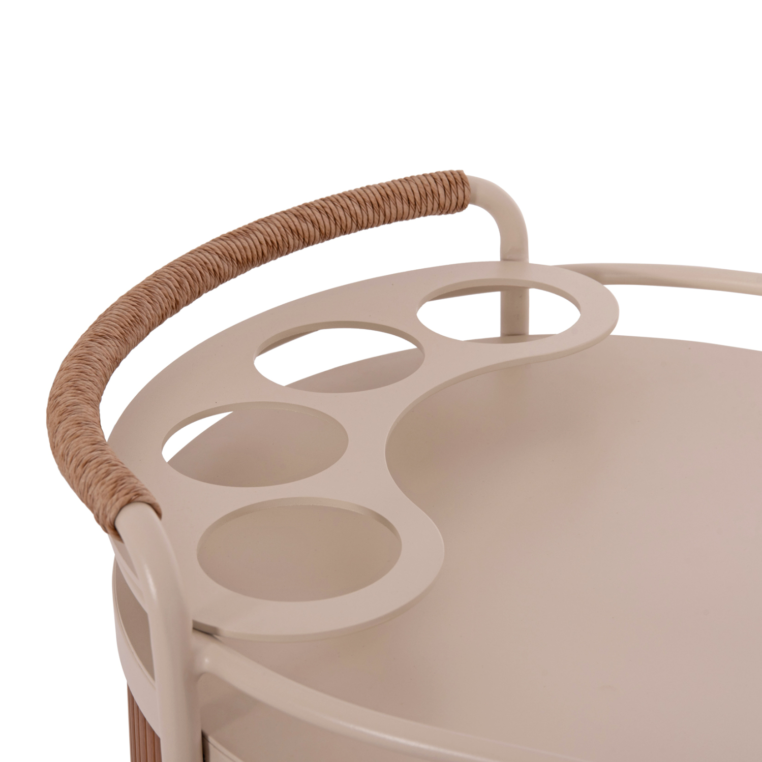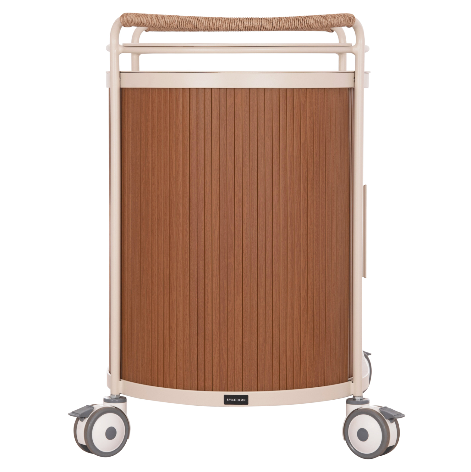 SYMETRON brings the DESTINY series buffet/trolley and upgrades your professional space. It has an aluminum frame in IVORY color, and a sliding door in SAND BEIGE color. Inside the trolley there is a shelf that divides the space into 2 levels. The top is made of sintered stone in ivory color as well, while the carrying handles are covered with P.E.wicker. Finally, the wheels have a stop mechanism, while the rolling quality is exemplary.