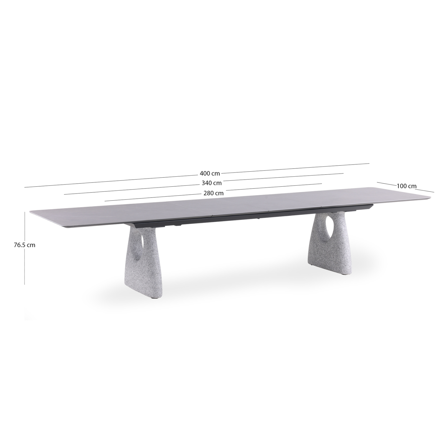 EXTENDABLE DINING TABLE GOFFEN SM6410.02 DARK GREY ALUMINUM & SINTERED STONE TOP 280-400x100x76.5H