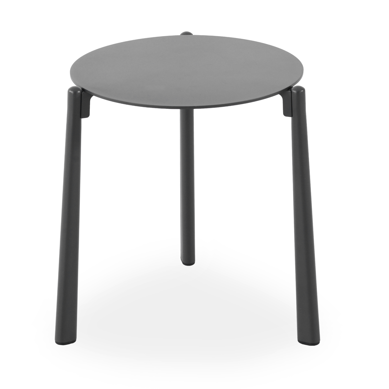 DENERIS is a round outdoor side table with three legs made entirely of aluminum in CHARCOAL color. Ideal to combine with any type of outdoor furniture!