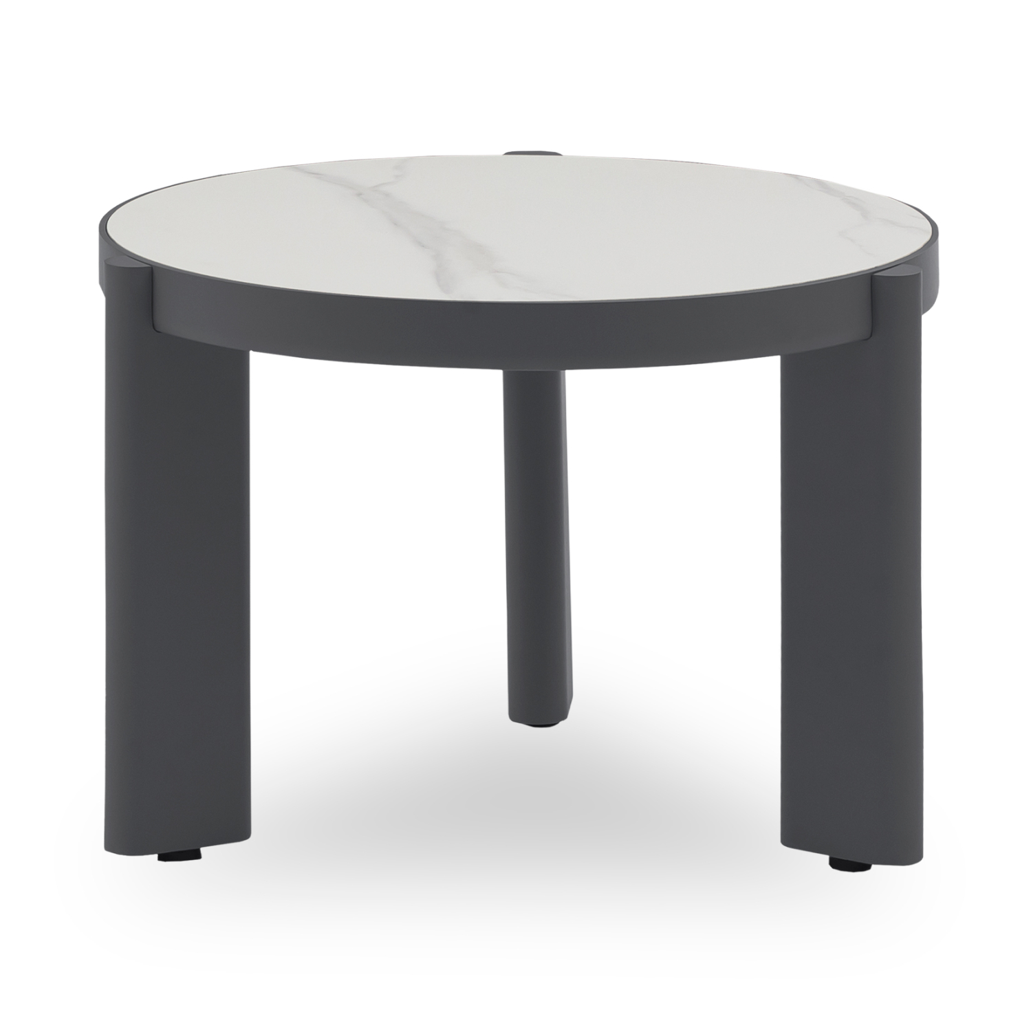 Η SYMETRON παρουσιάζει την σειρά επίπλων εξωτερικού χώρου ABSOLUTION. Μια σειρά που ακολουθεί πιστά τις αρχές που διέπουν την SYMETRON τόσο στην ποιότητα όσο και στην αισθητική τελειότητα των προϊόντων που προσφέρει. Αυτό το τρίποδο στρογγυλό τραπέζι μέσης για τον εξωτερικό χώρο έχει σκελετό αλουμινίου σε ΓΚΡΙ χρώμα και επιφάνεια από sintered stone σε ΓΚΡΙ χρώμα.