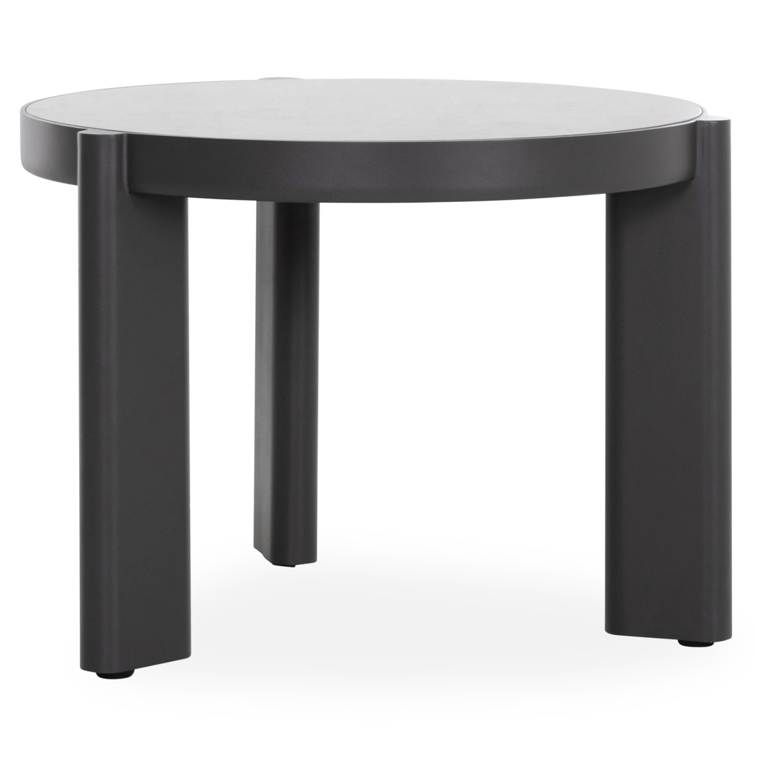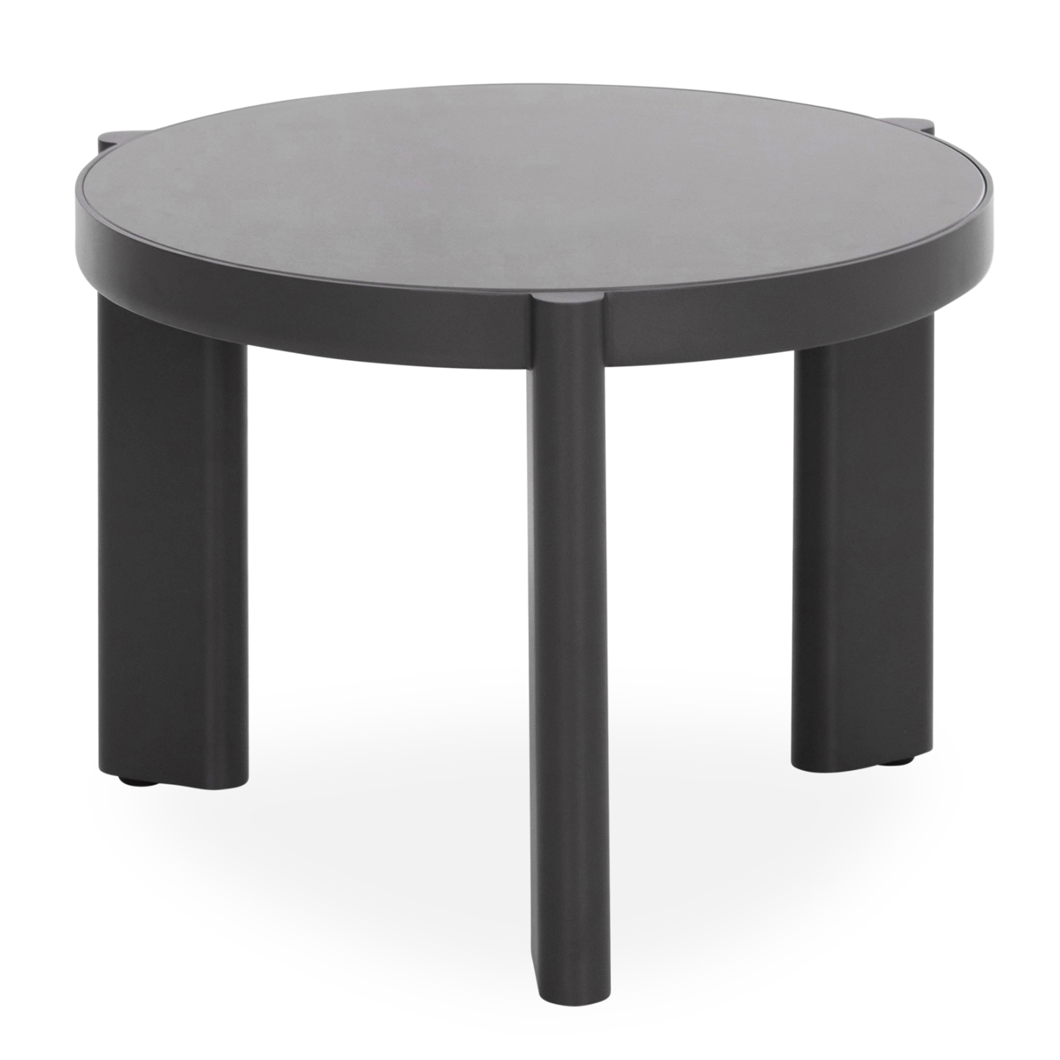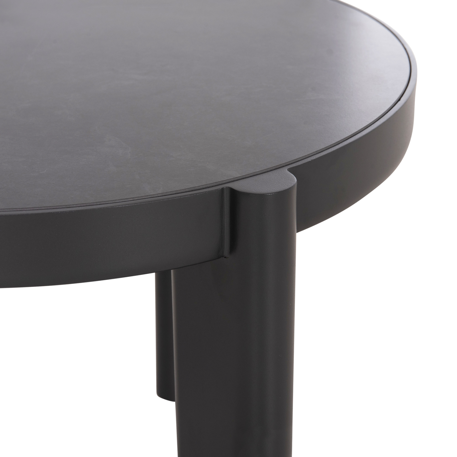 SYMETRON presents the ABSOLUTION outdoor furniture series. A series that faithfully follows the principles that govern SYMETRON both in the quality and aesthetic perfection of the products it offers. This round tripod outdoor coffee table has a dark GREY aluminum frame, and a dark GREY (Vic Dark Grey) sintered stone top.
